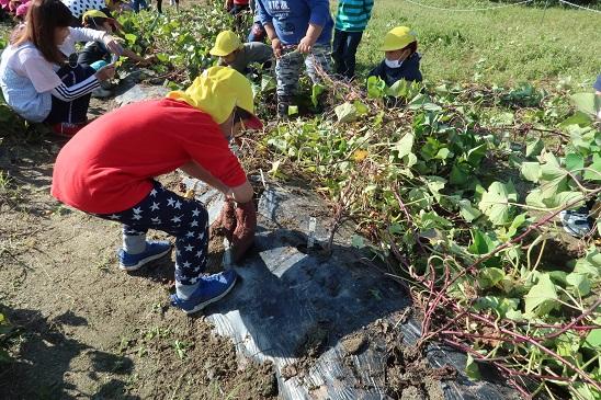 10月21日(水)に、5月30日にかがやきファームに植えたさつま芋の収穫をしました。