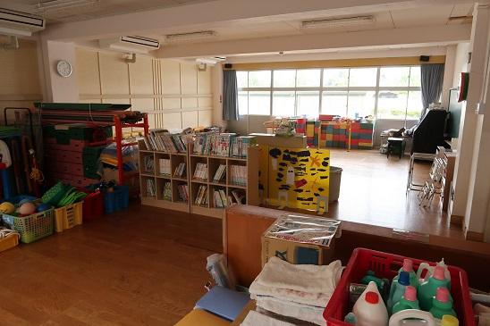 ④これは遊戯室です。北側が工事する部屋の荷物置き場に、南側が臨時の年少つくし教室となります。