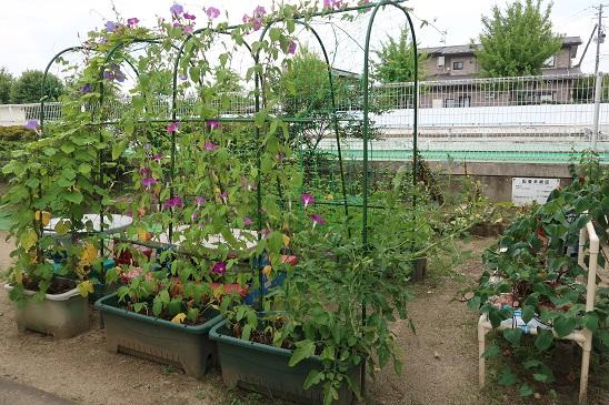 今年、園で育てた、じゃがいも、ミニトマト、エダマメを食べました。それに野菜ジュース。