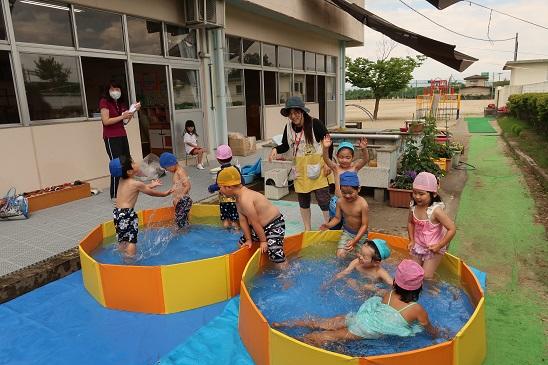 二手に分かれて、水を掛け合ったり、仲良く手をつないで水につかったり、楽しいプールの時間を過ごしました。
