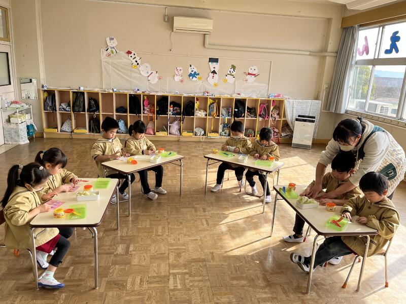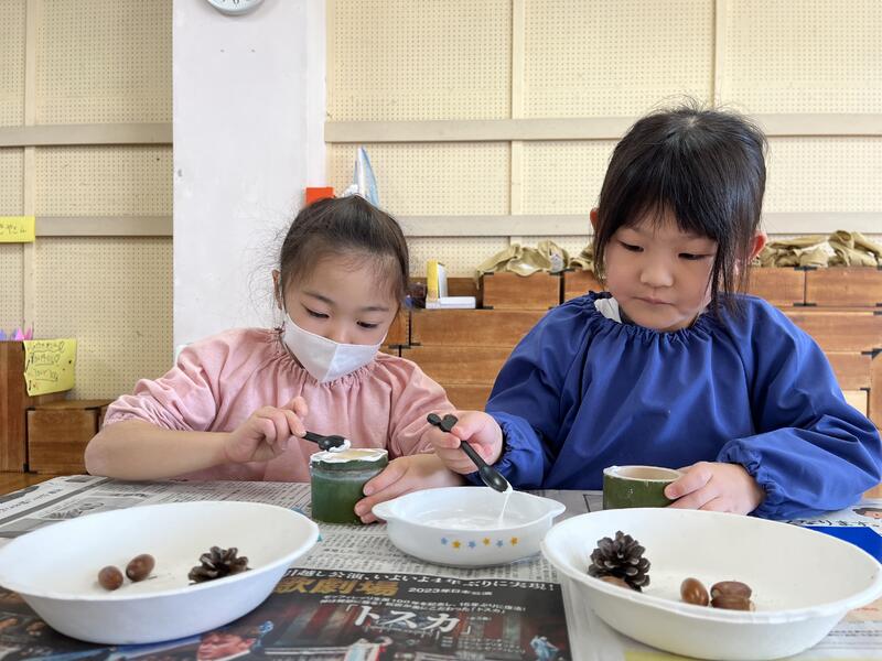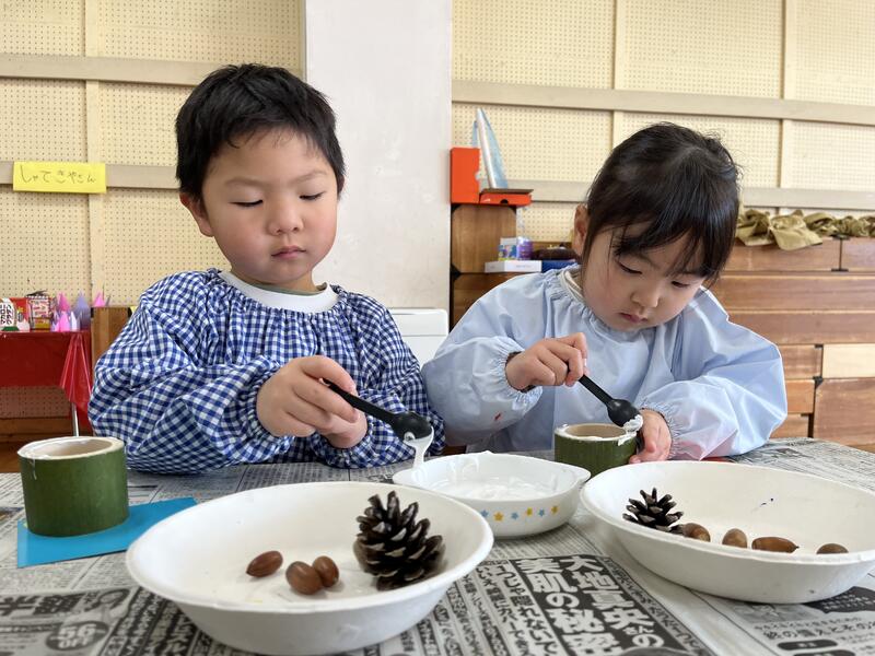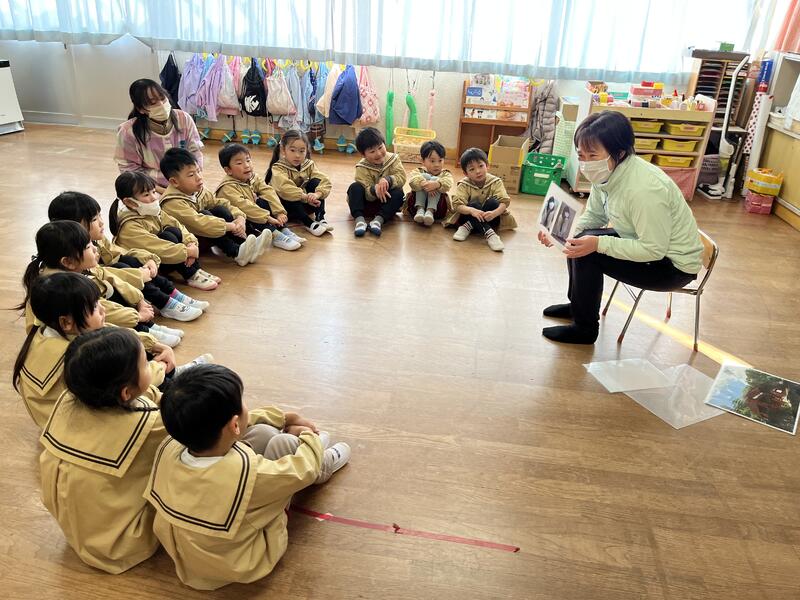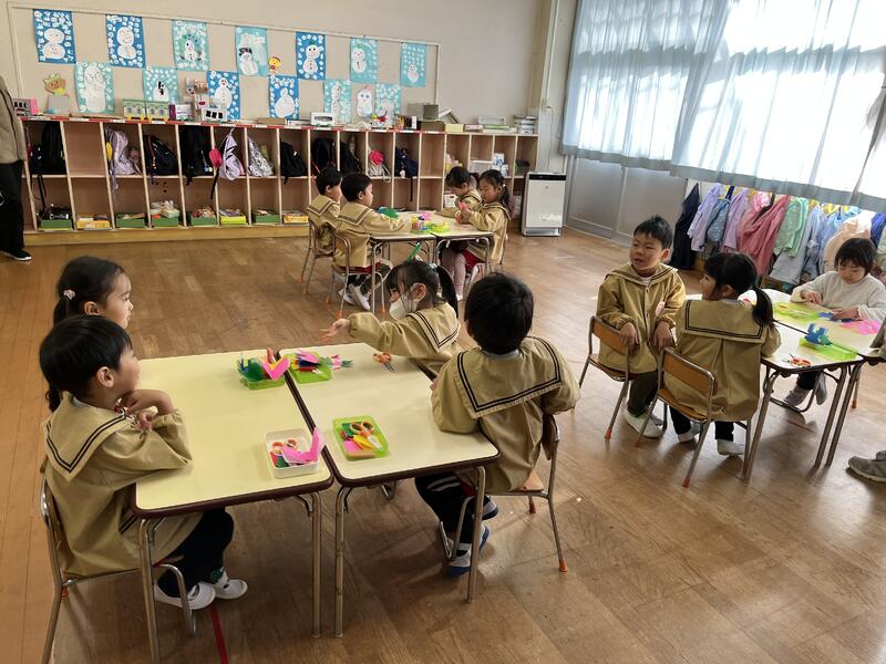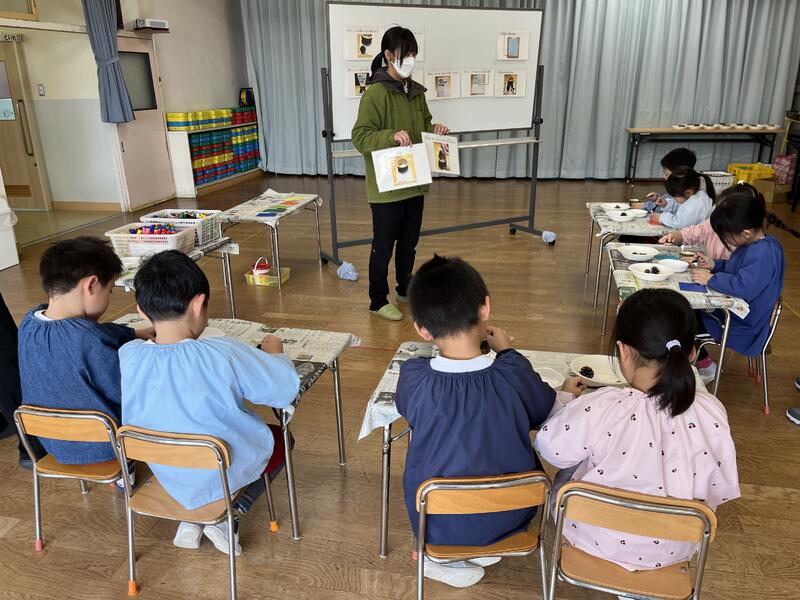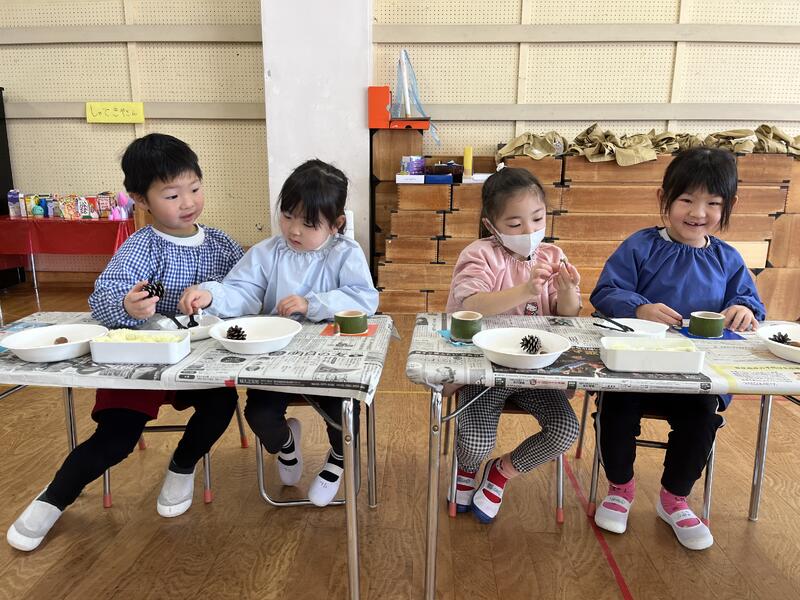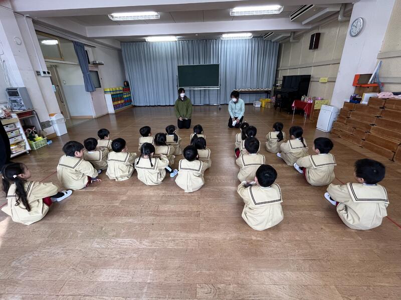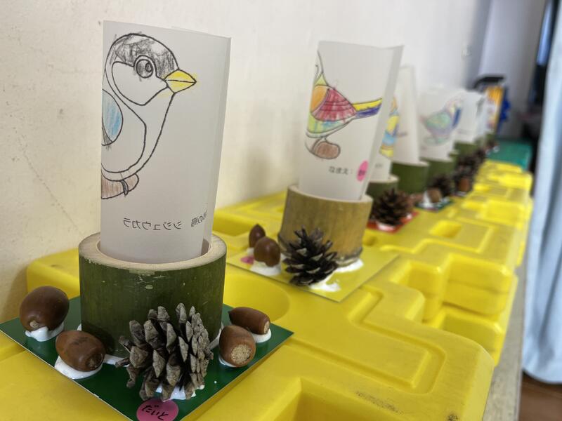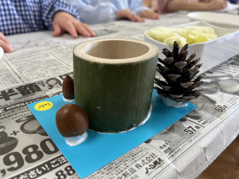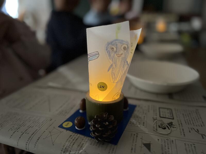 この後、つくし組は、ランプシェードをつくり、たけのこ組は、お話を聞きました。