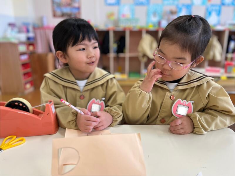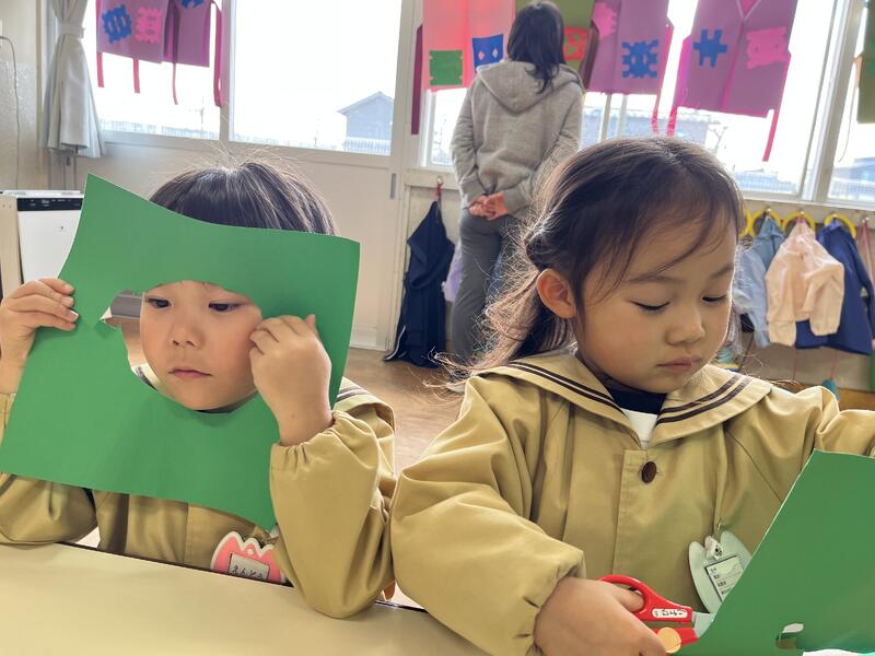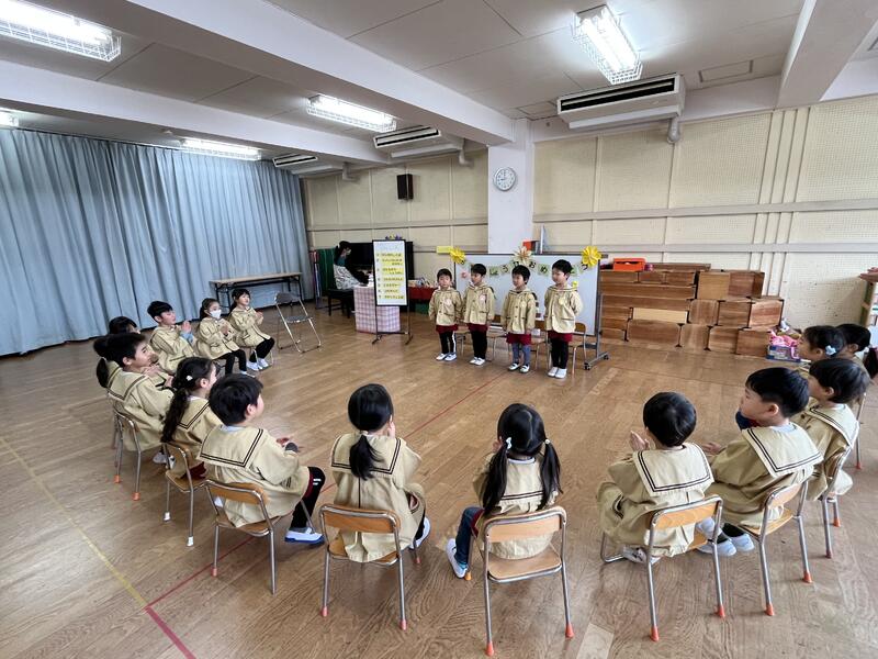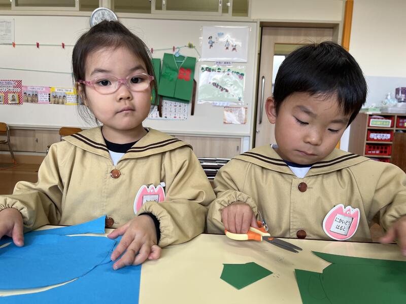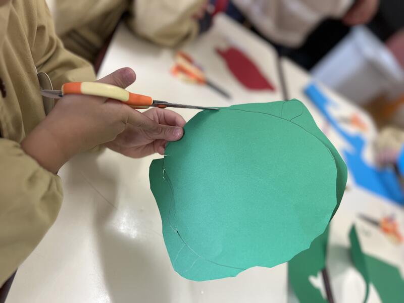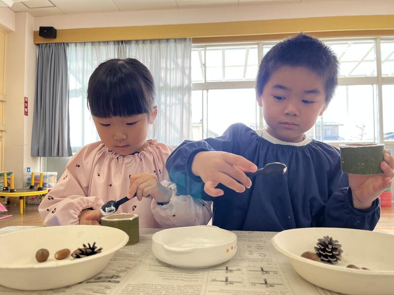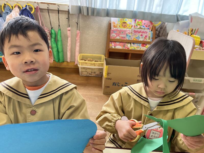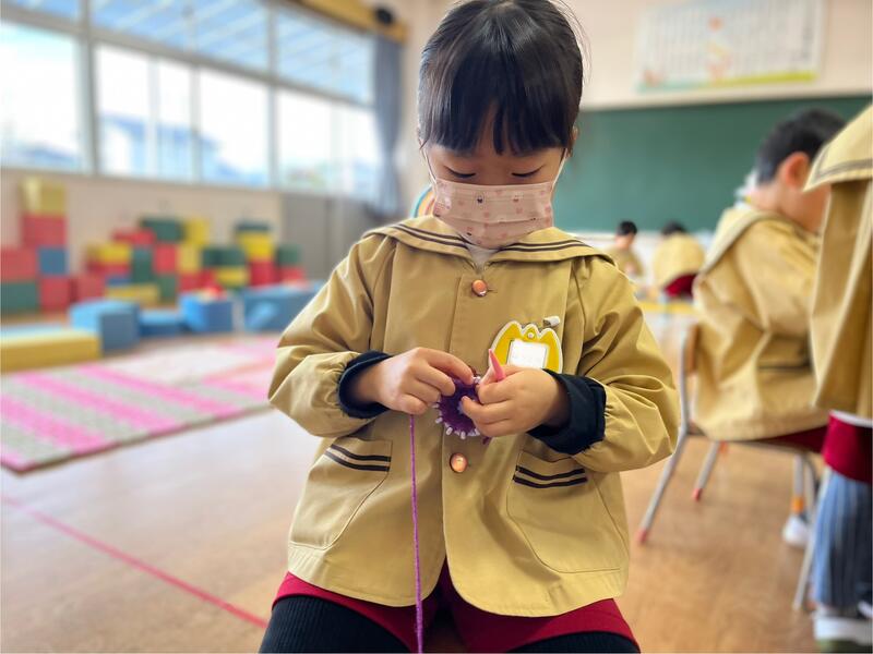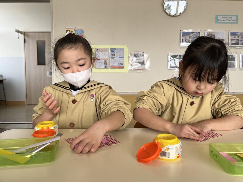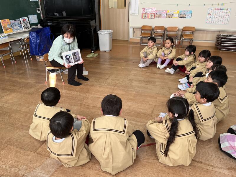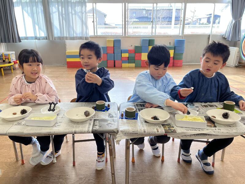この後、つくし組は、ランプシェードをつくり、たけのこ組は、お話を聞きました。