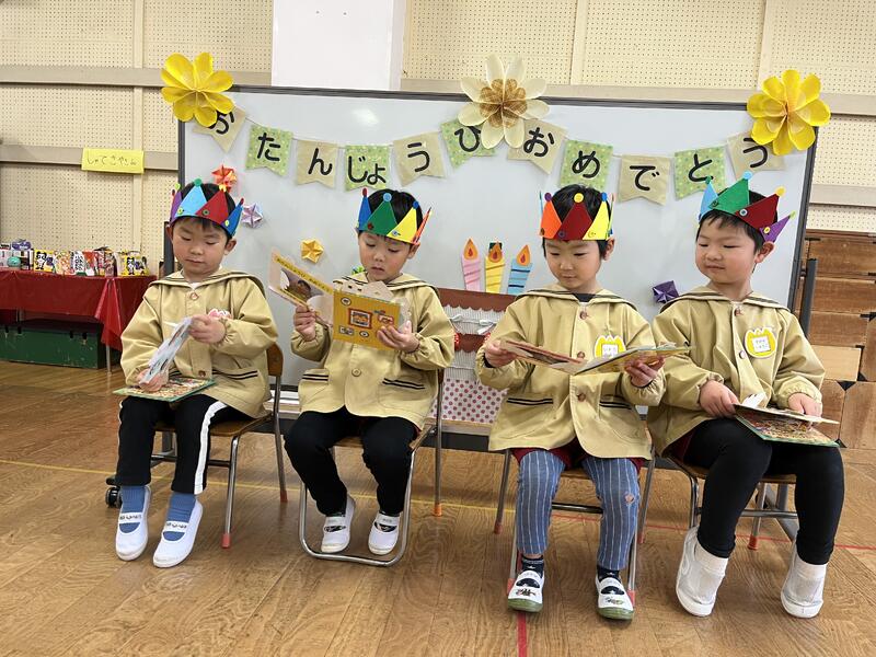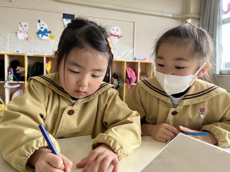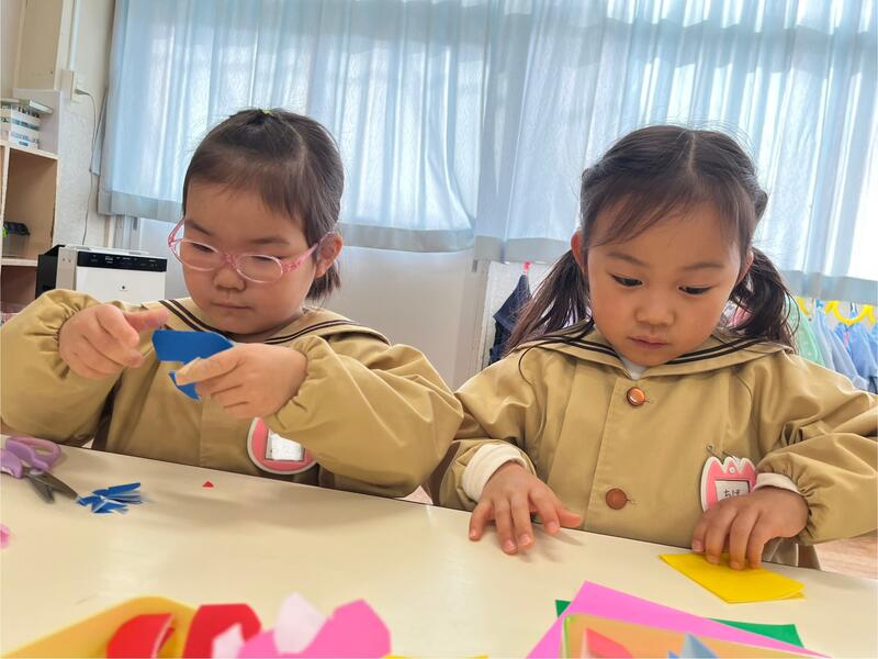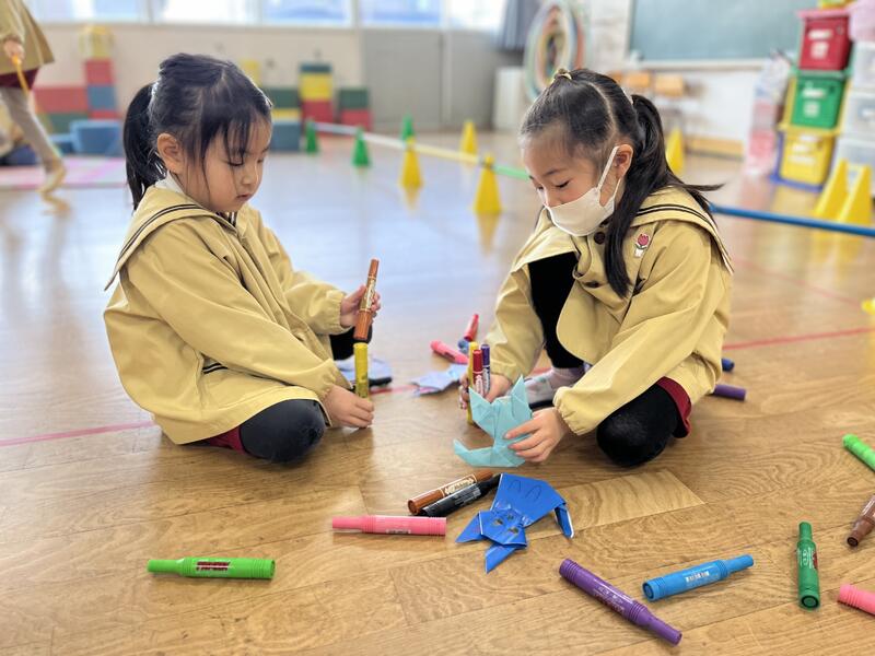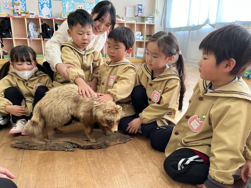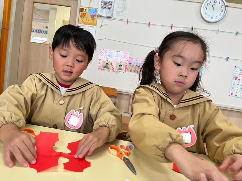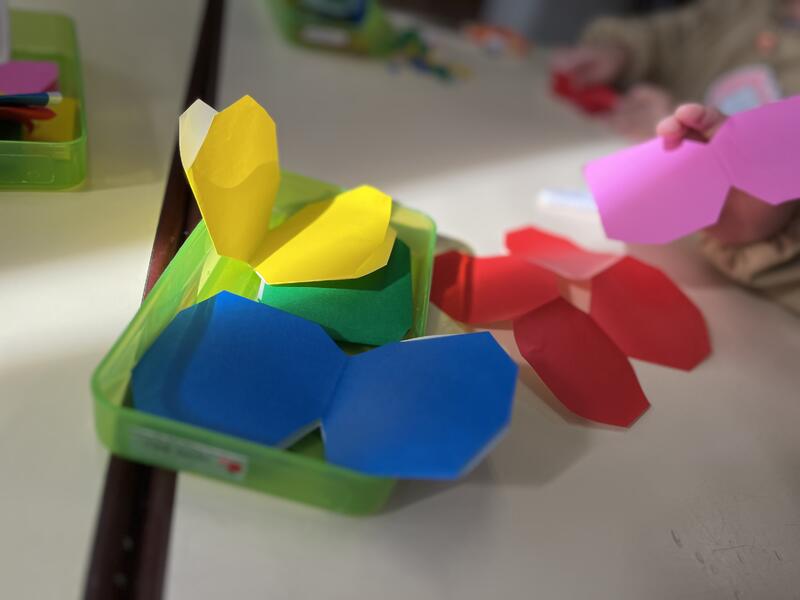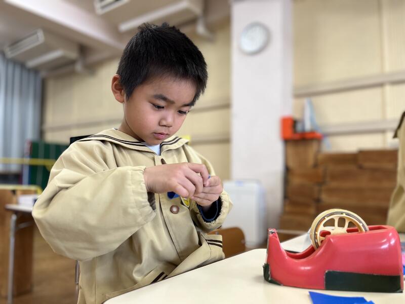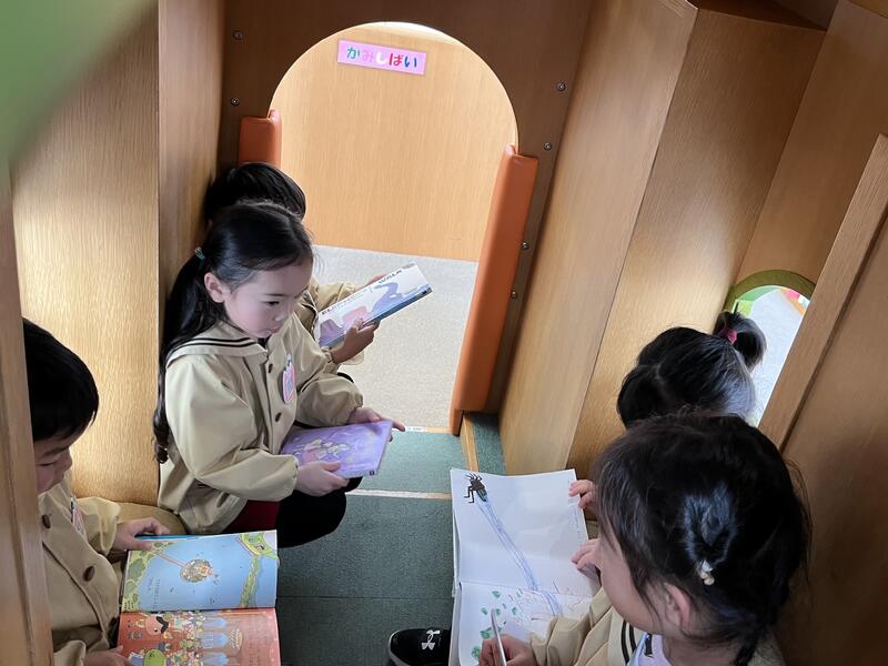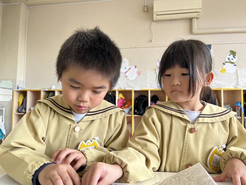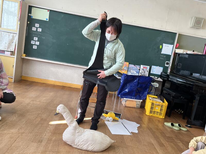 この後、つくし組は、ランプシェードをつくり、たけのこ組は、お話を聞きました。