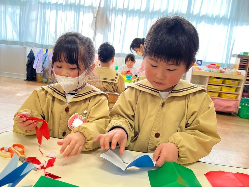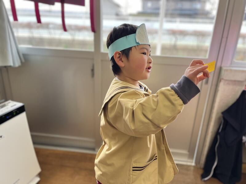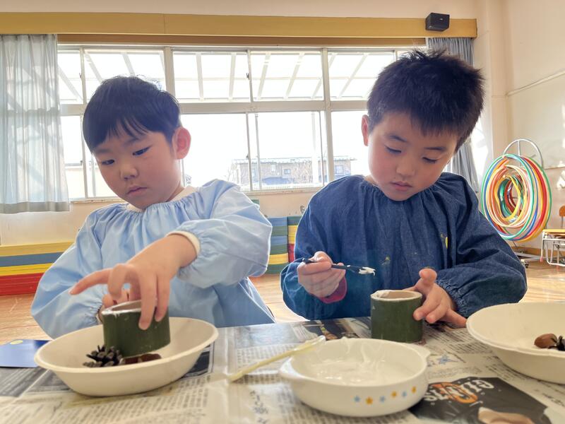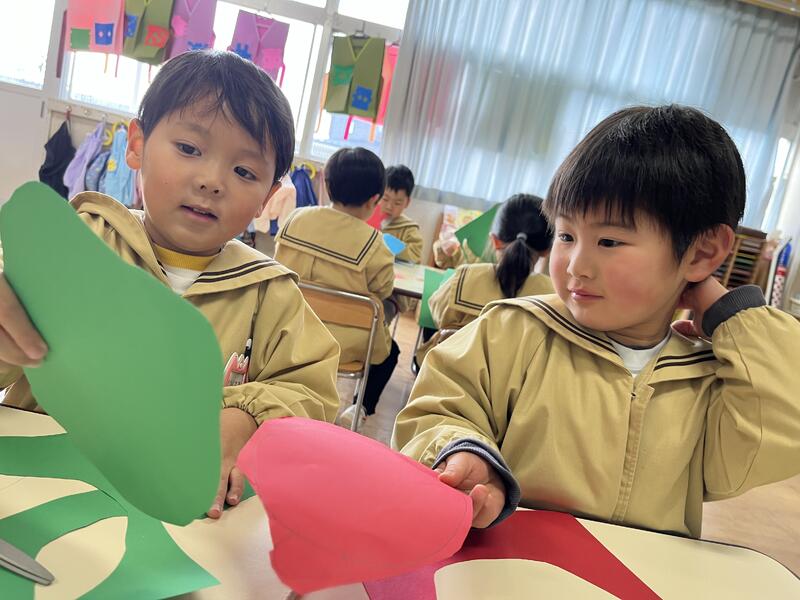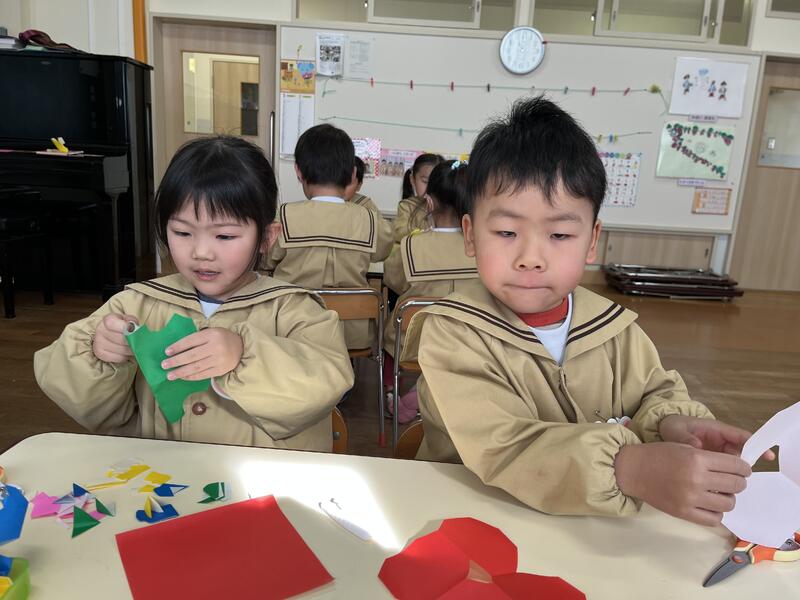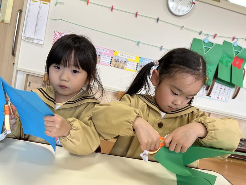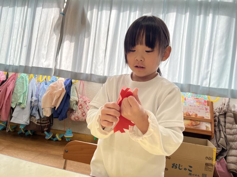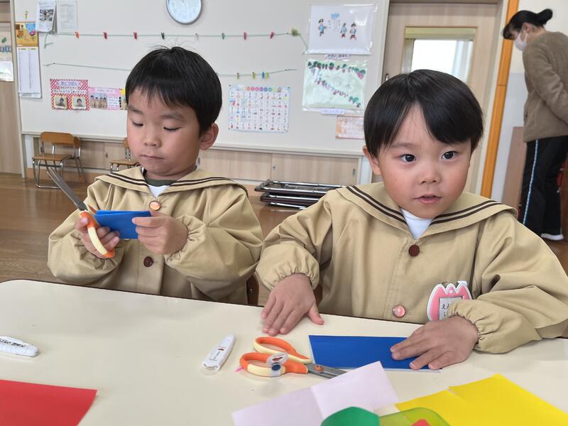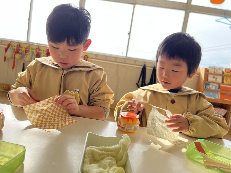 たけのこ組が、裃(かみしも)の飾りを作りました。