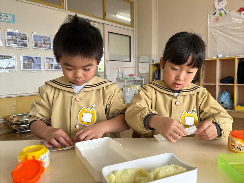 2025年1月30日 09時41分たけのこ組が、さつまいも餅をつくりました。