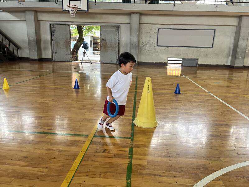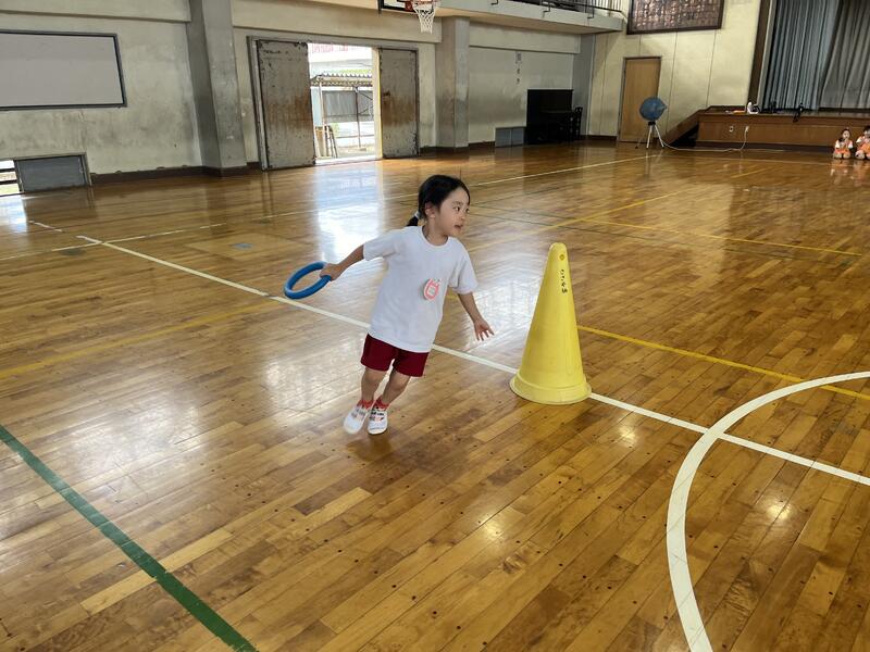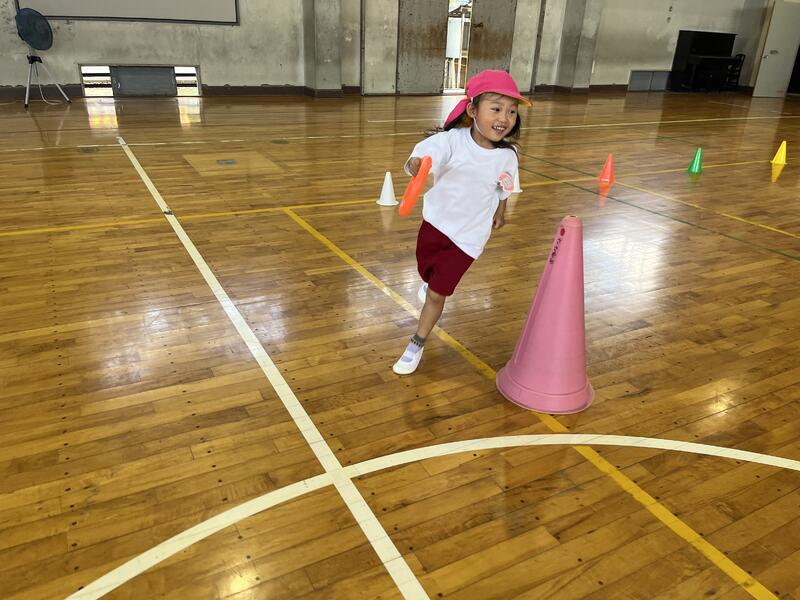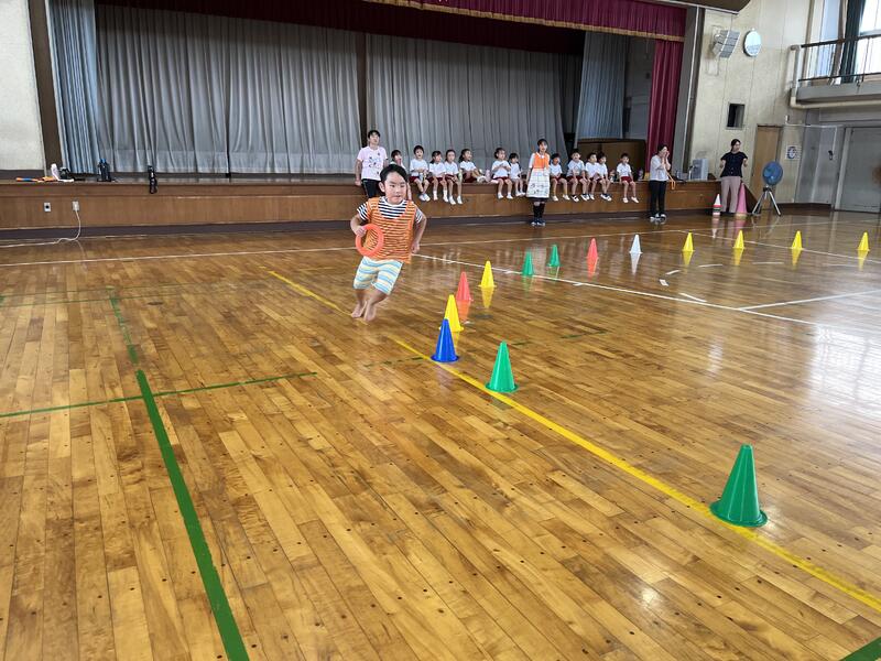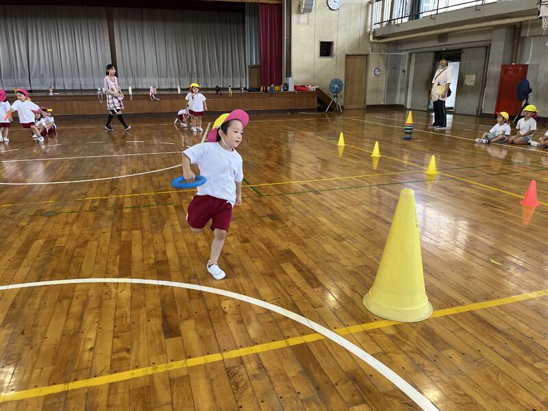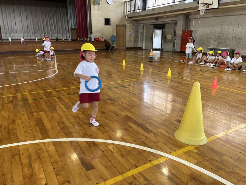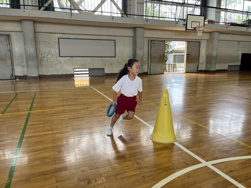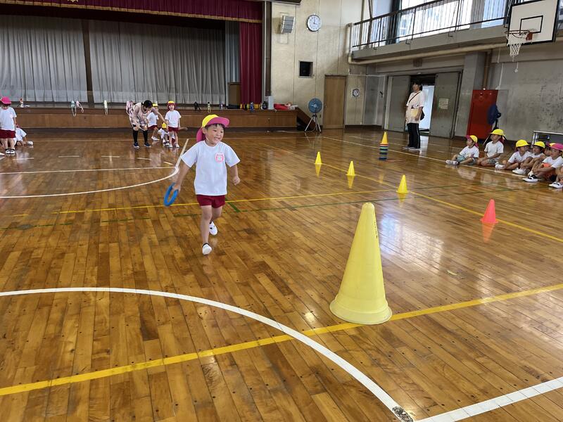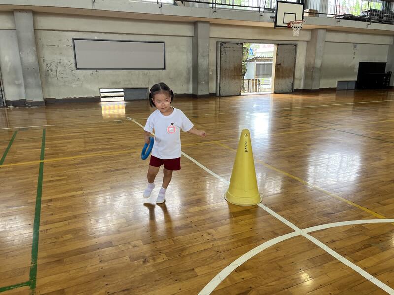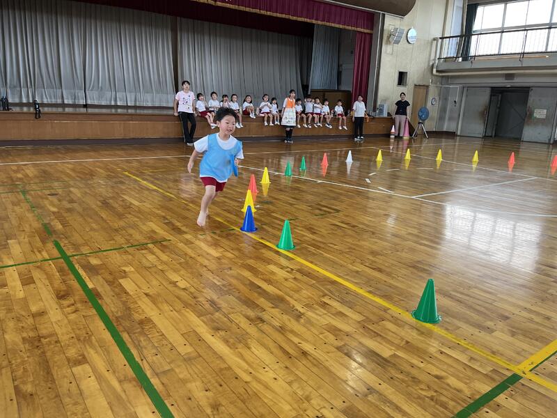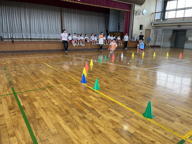 たけのこ組の1回目です。走路のモップがけをし、危険物を除去した上で、裸足で走りました。