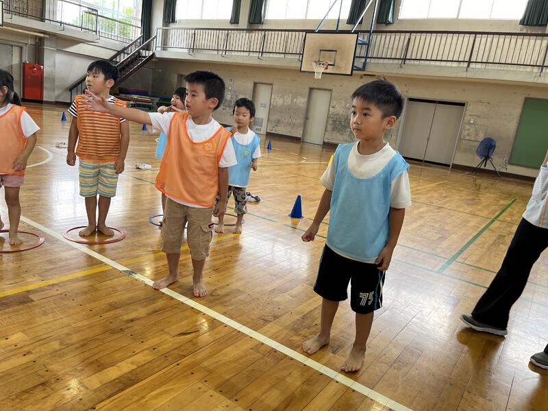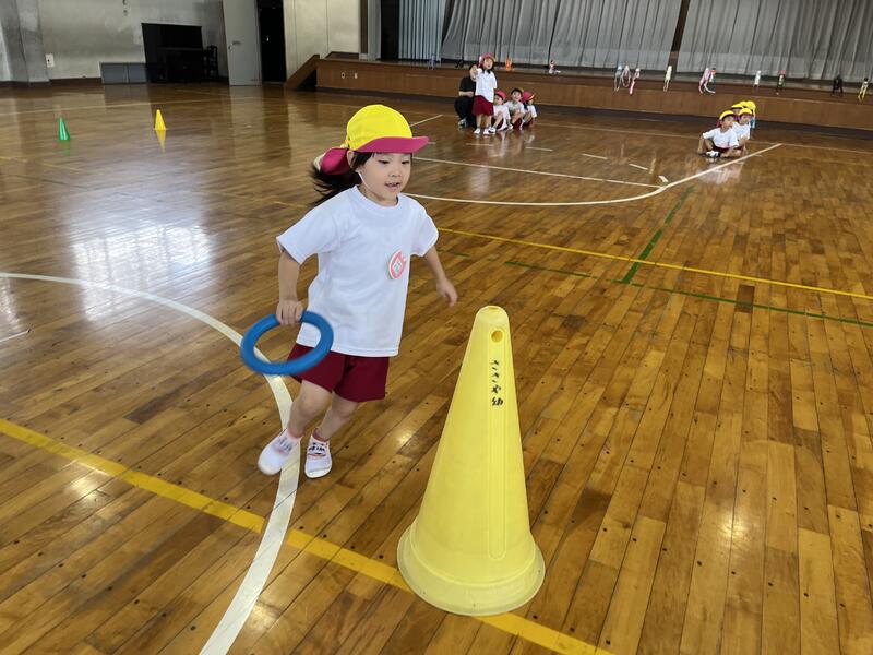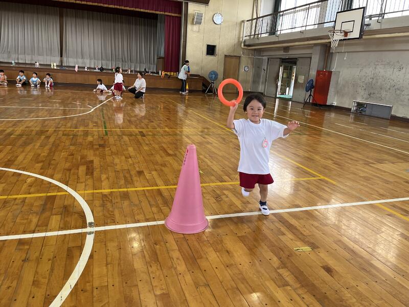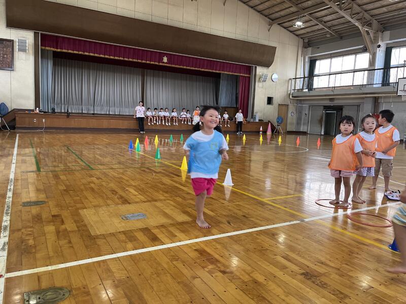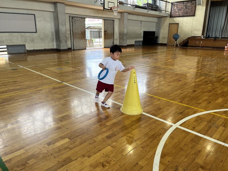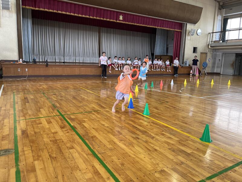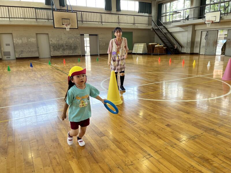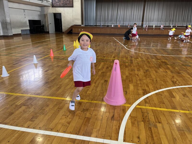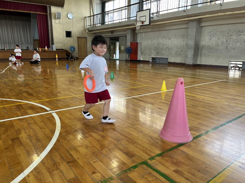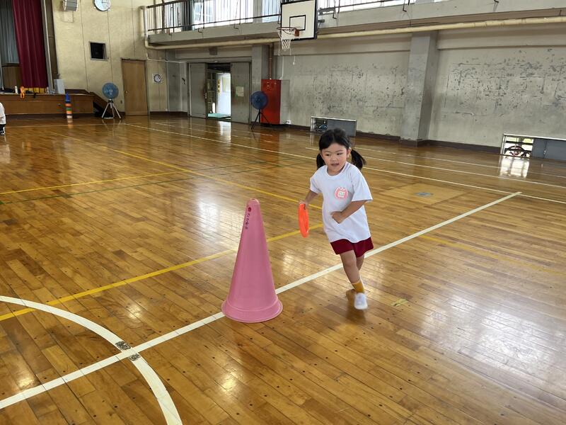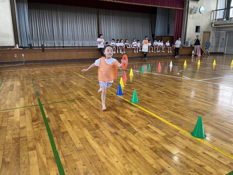 たけのこ組の1回目です。走路のモップがけをし、危険物を除去した上で、裸足で走りました。