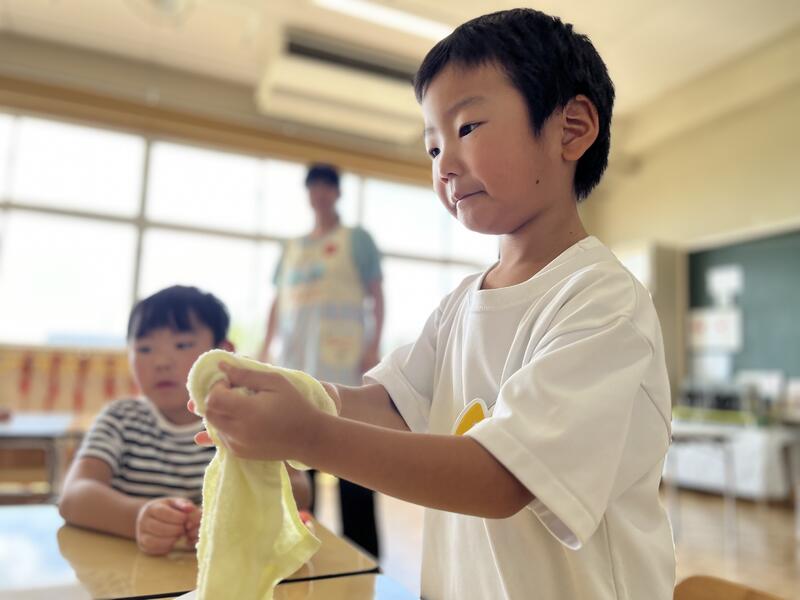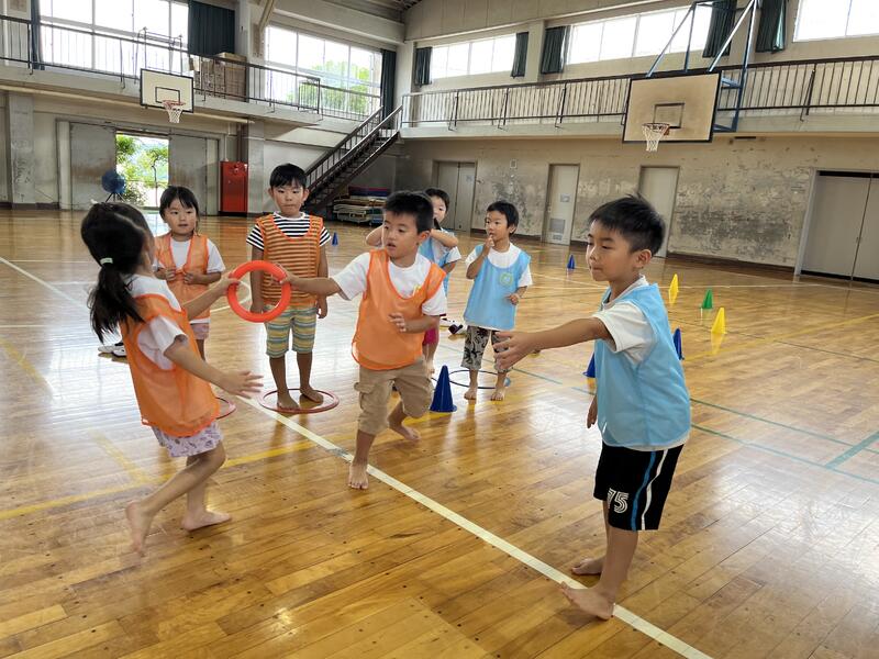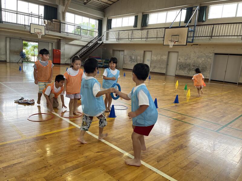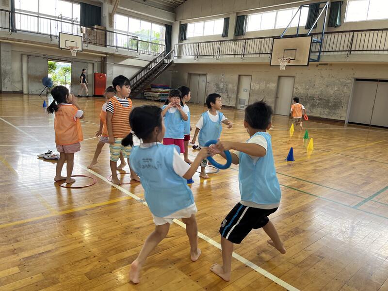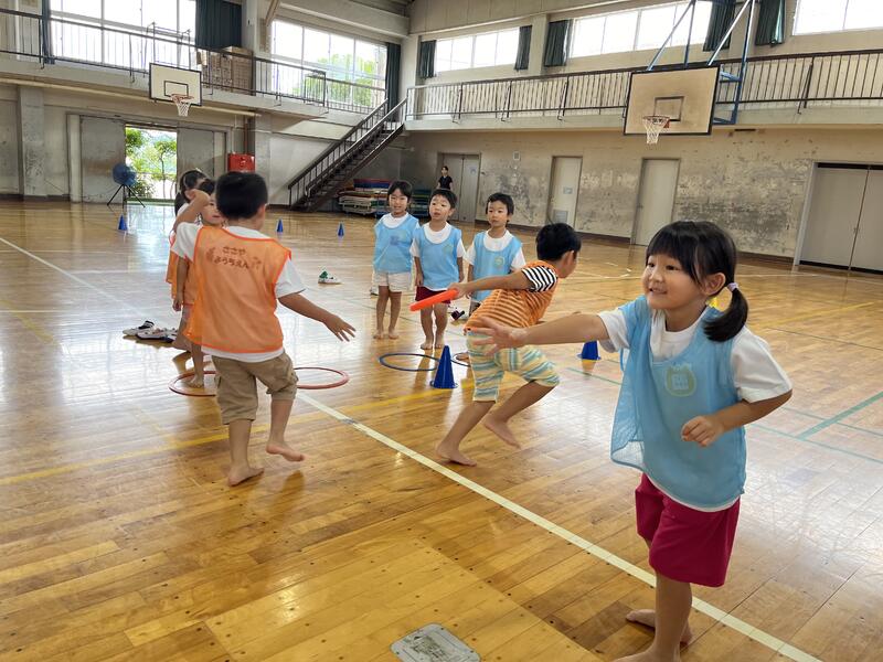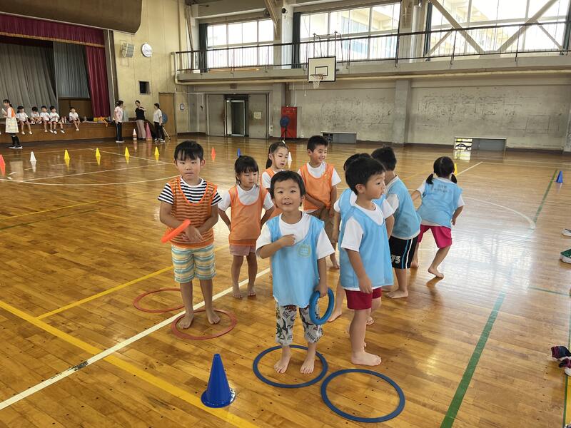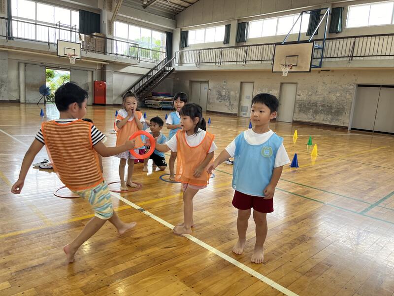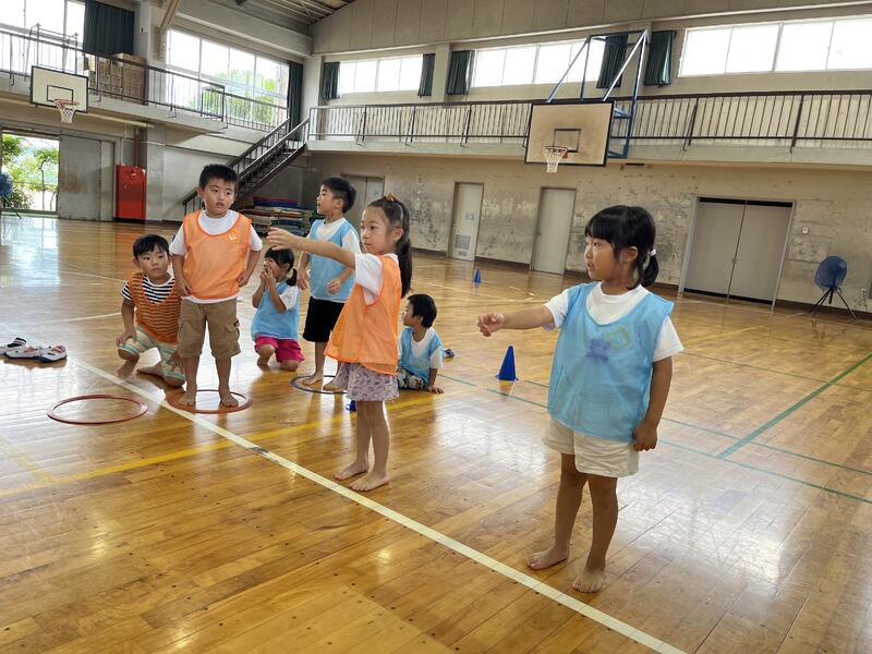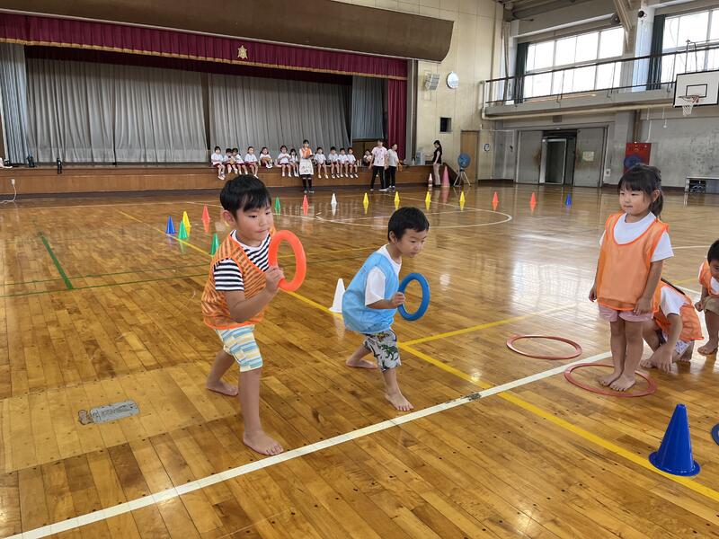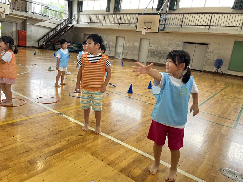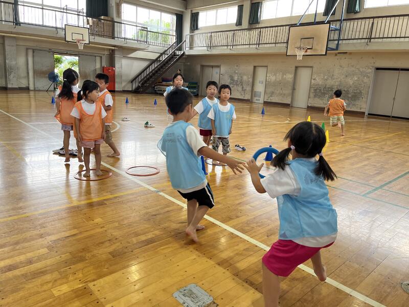 たけのこ組の1回目です。走路のモップがけをし、危険物を除去した上で、裸足で走りました。