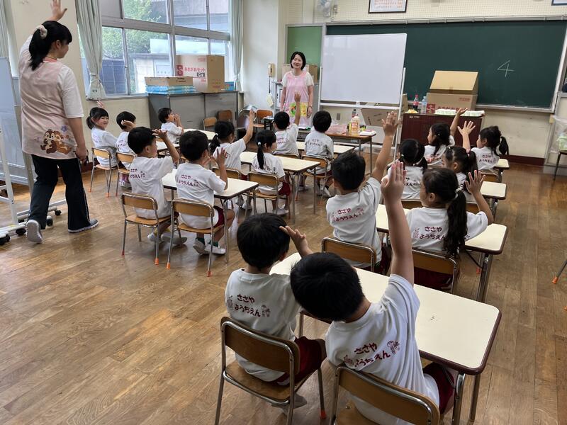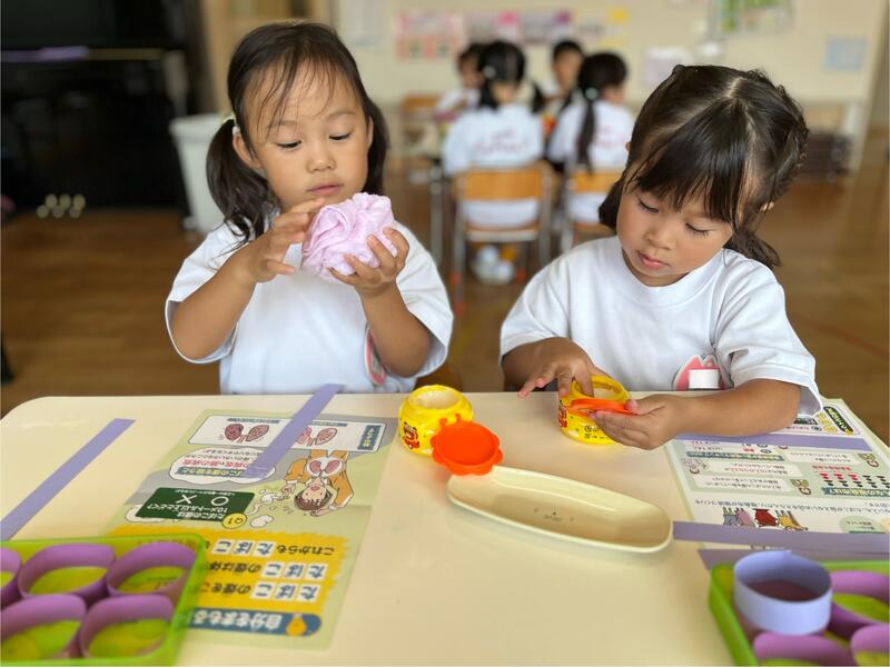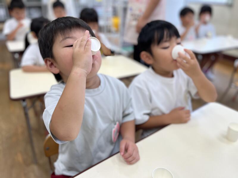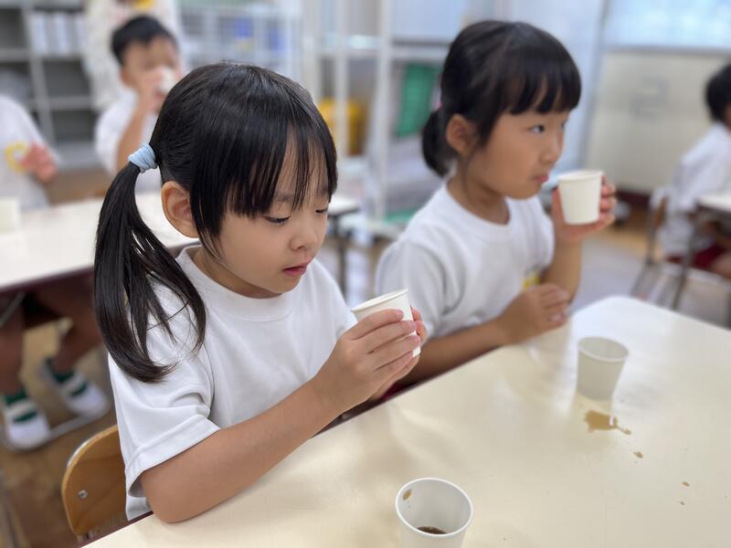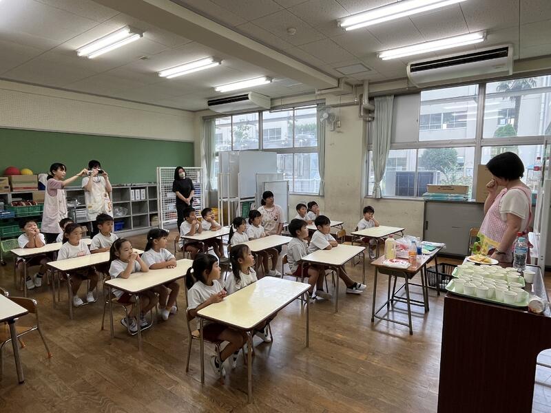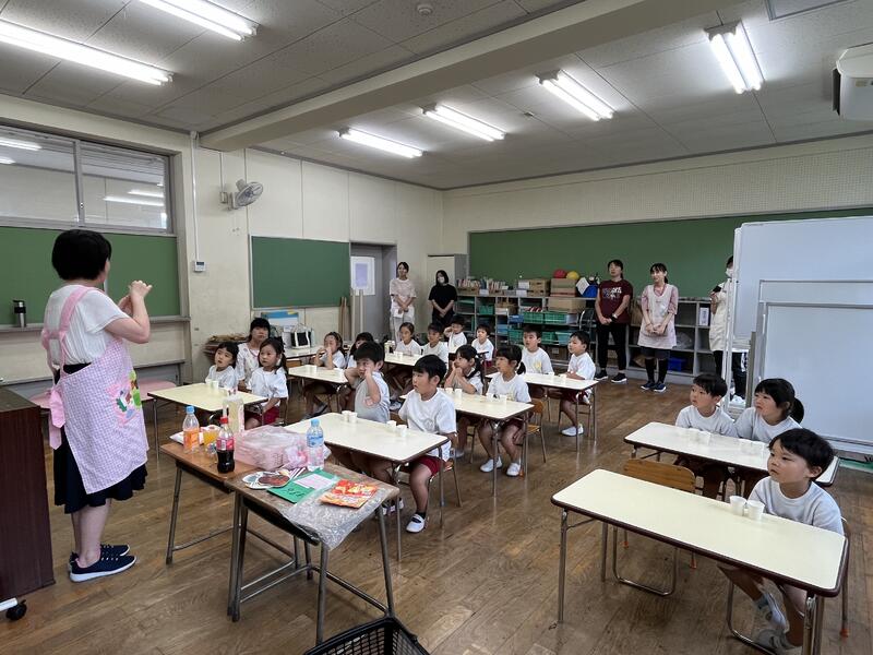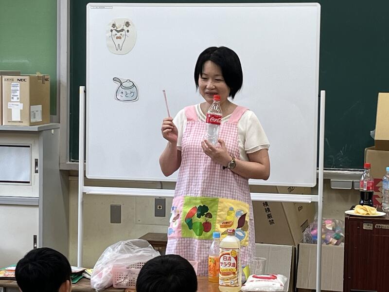 2024年9月10日 11時29分北部給食センターの本田先生から、お菓子やジュースには、どのくらいのお砂糖や油が入っているかなどについて教えていただきました。お菓子を食べたり、ジュースを飲んだりするときの量が大切であることを学びました。