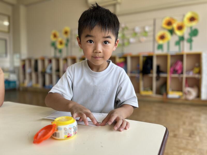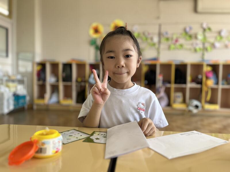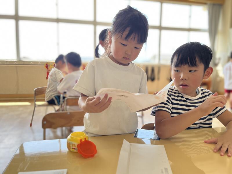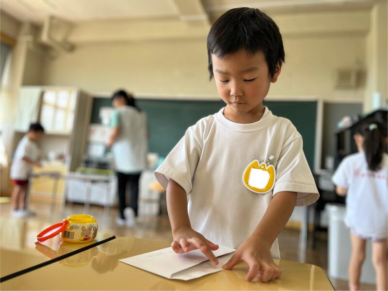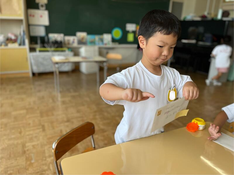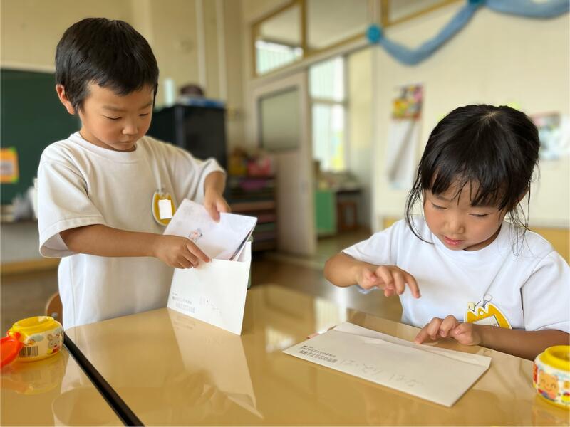 たけのこ組が、お手紙を書いて封筒に入れました。
