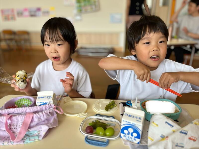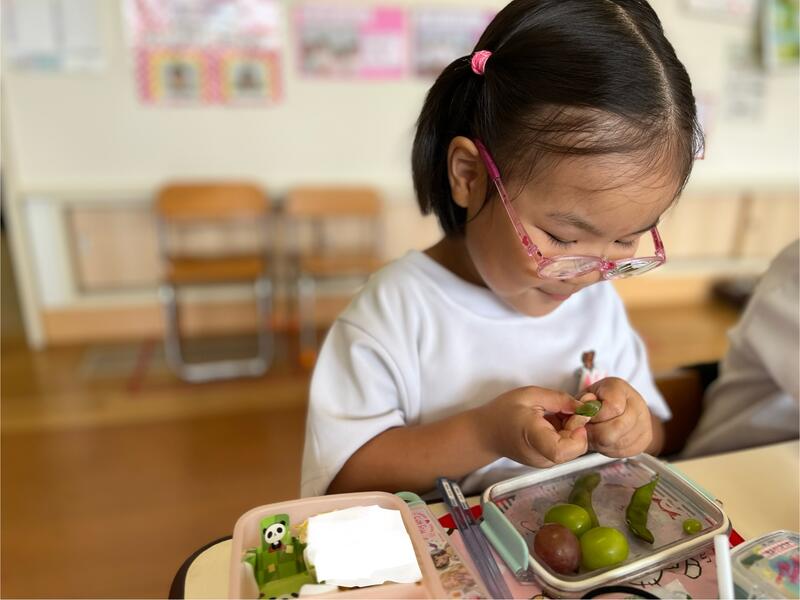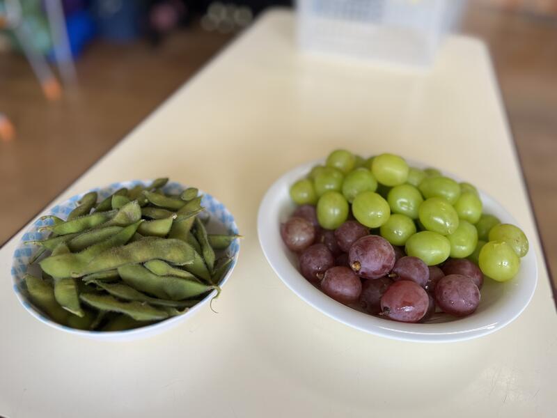 畑でとれたえだまめといただいたぶどうをお弁当の時間に食べました。