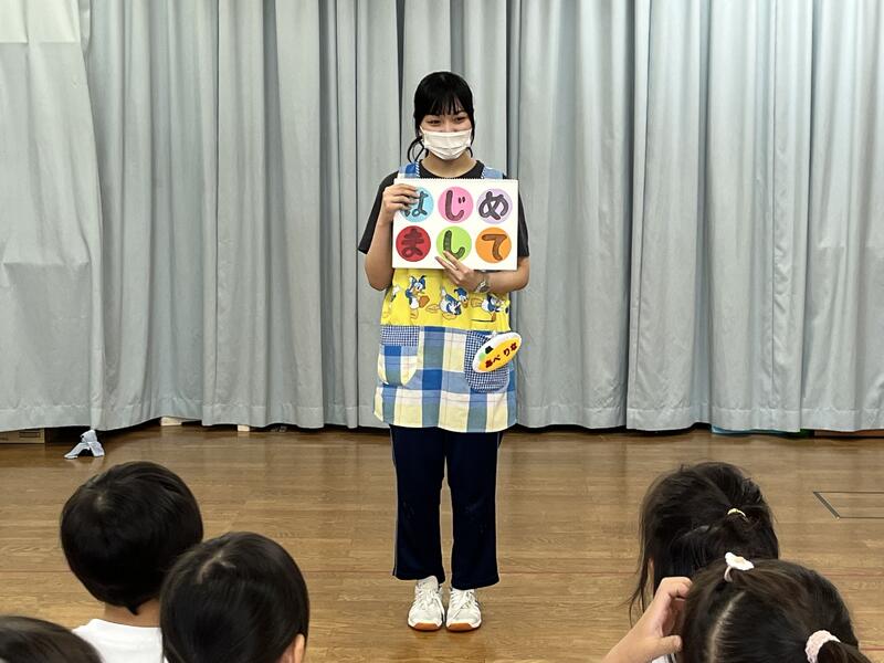今日から教育実習生が来てくれました。実習期間は、15日間になります。紹介の式を行いました。