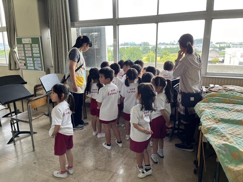 もしも水が上がってきて2階でも危ない場合は、小学校3階の音楽室まで避難します。そのための訓練もしました。