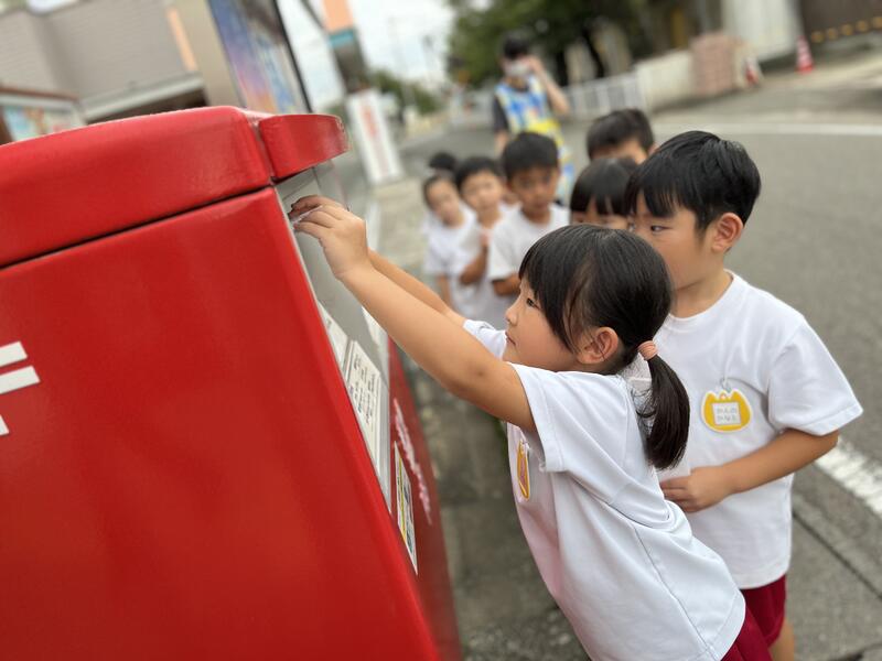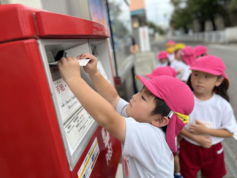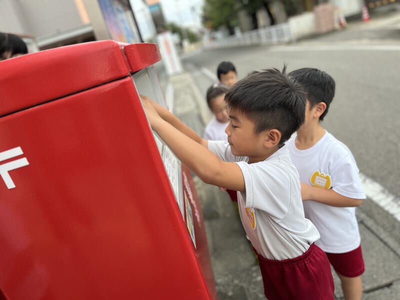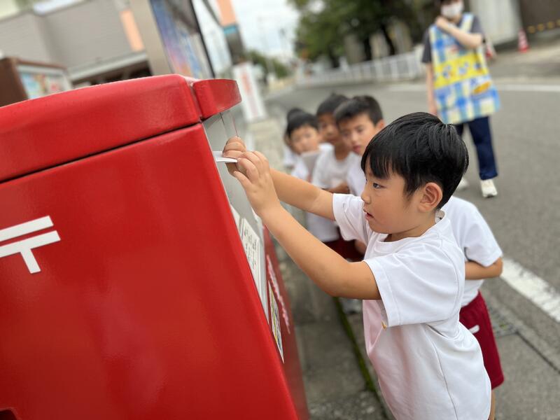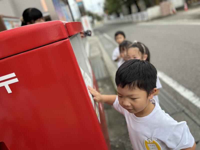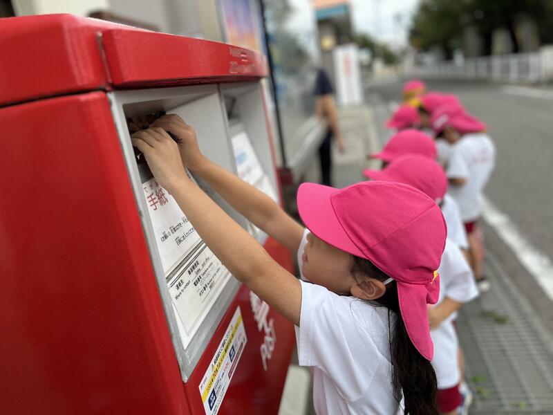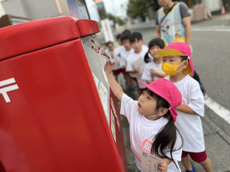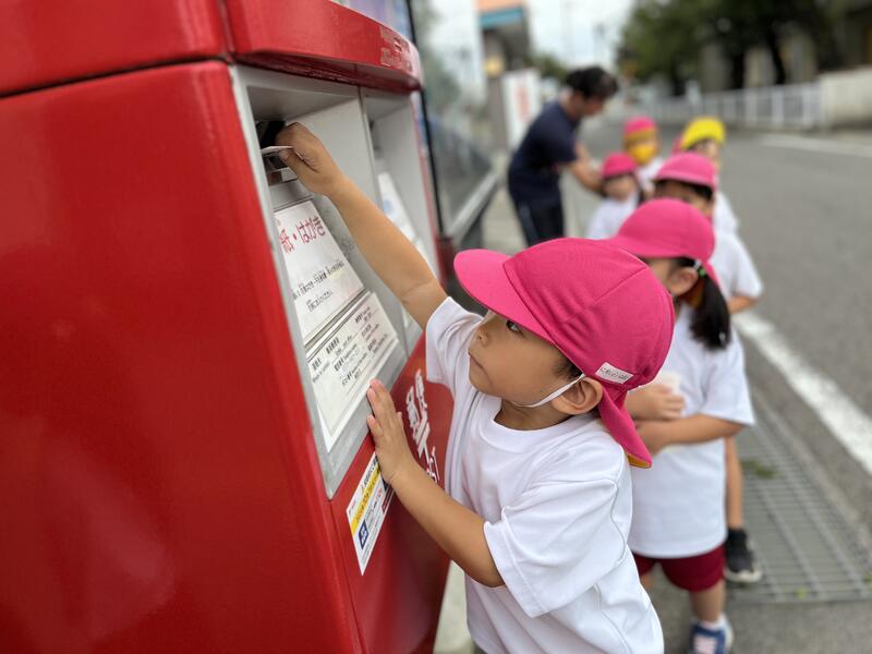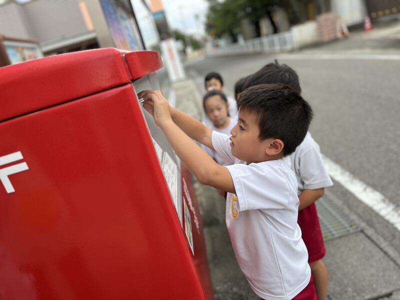 自分たちで書いたハガキやお手紙を郵便局のポストに入れました。