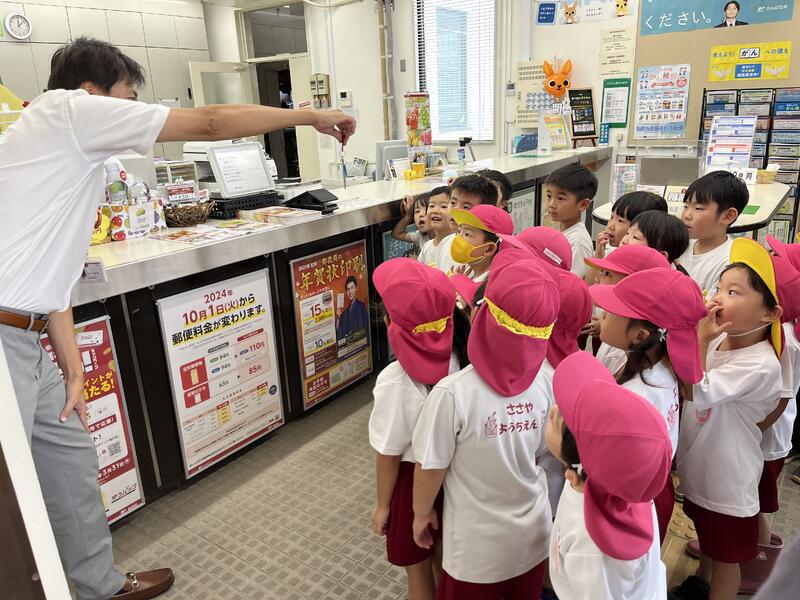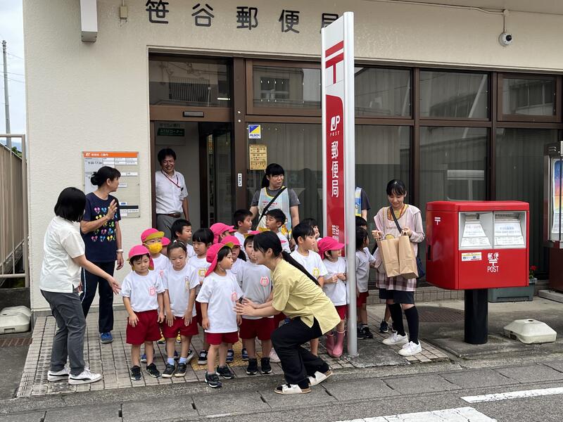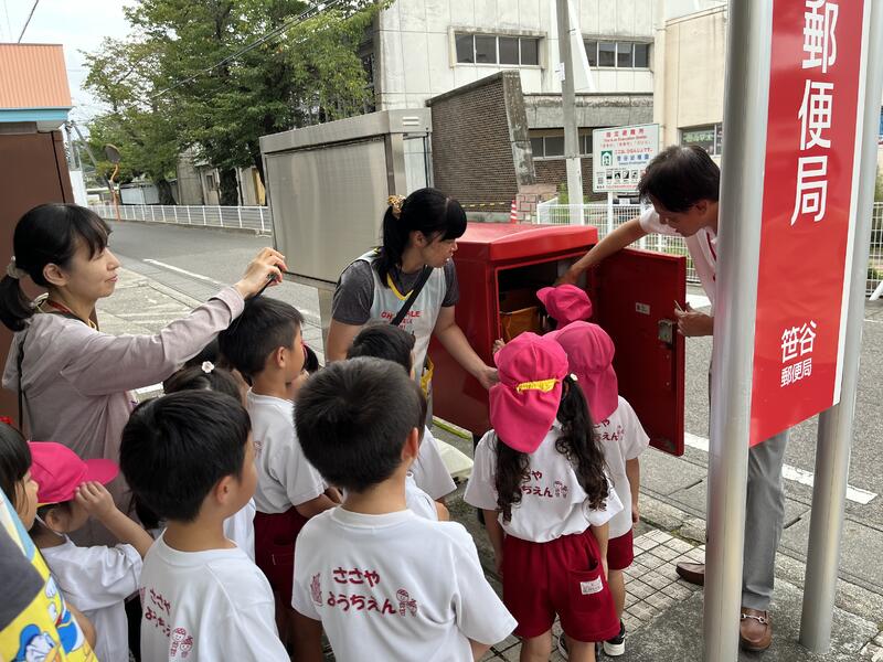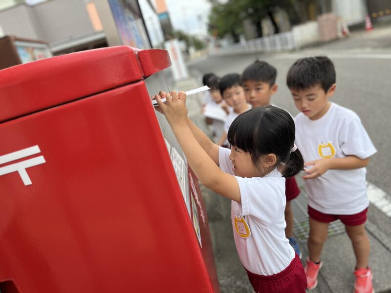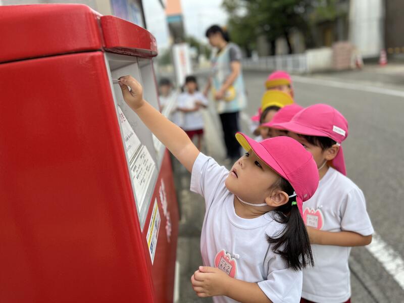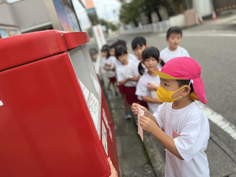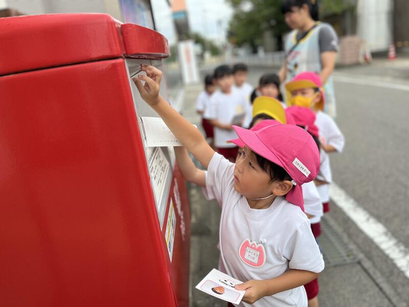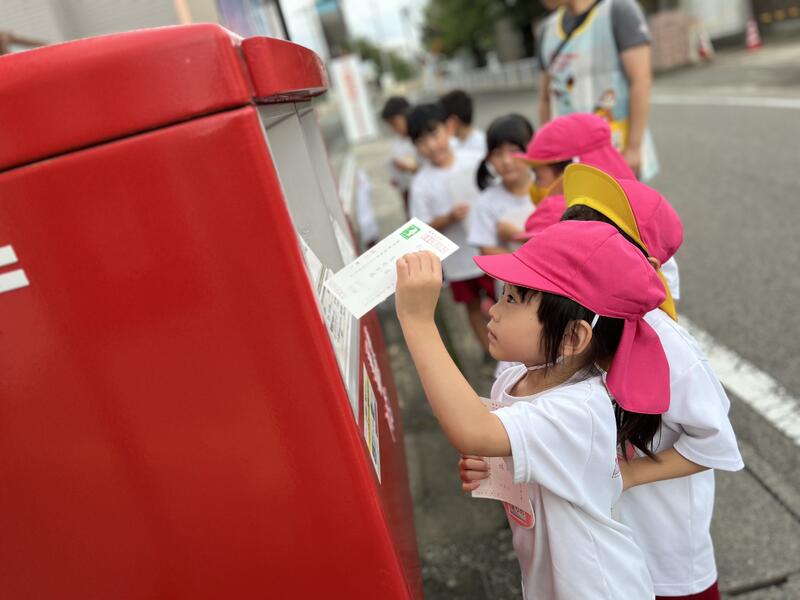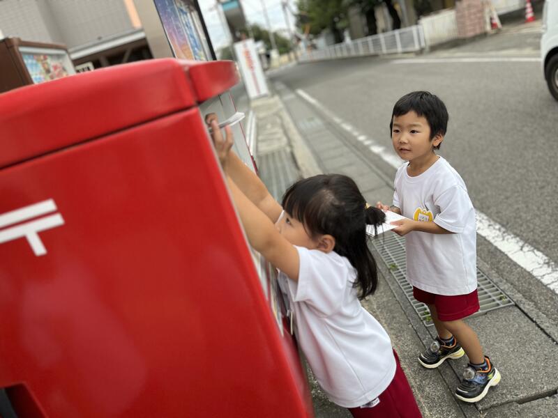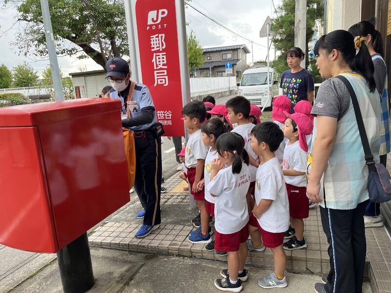自分たちで書いたハガキやお手紙を郵便局のポストに入れました。