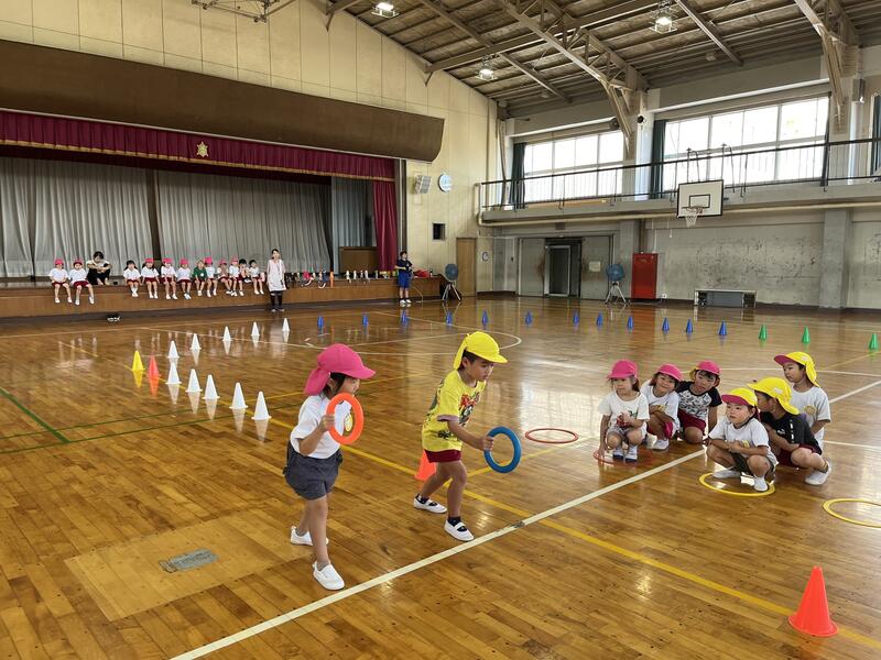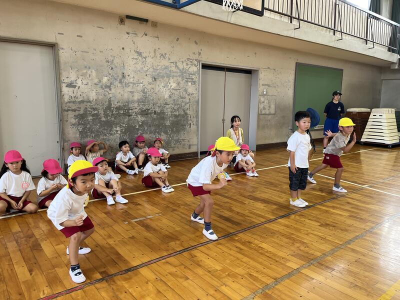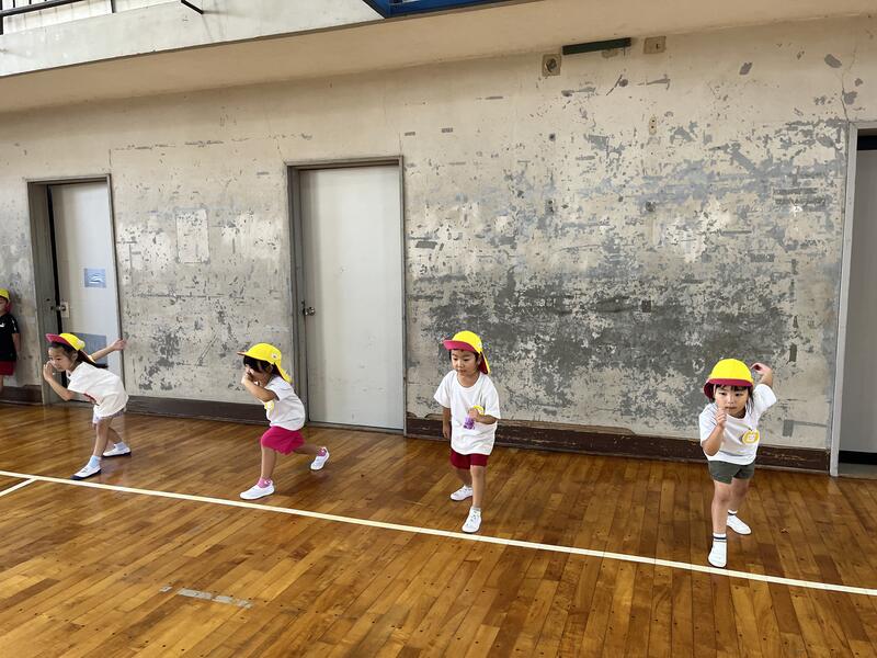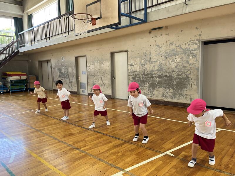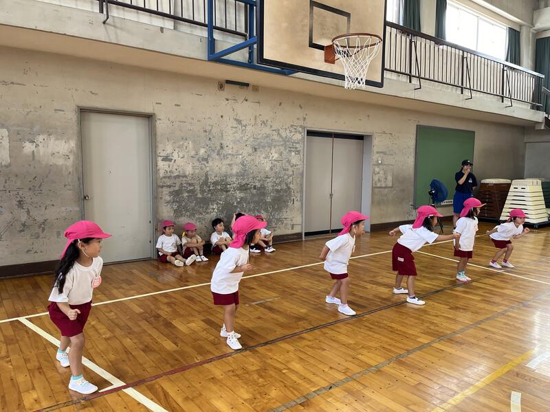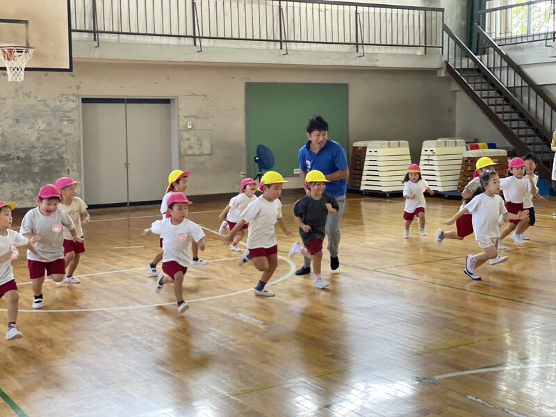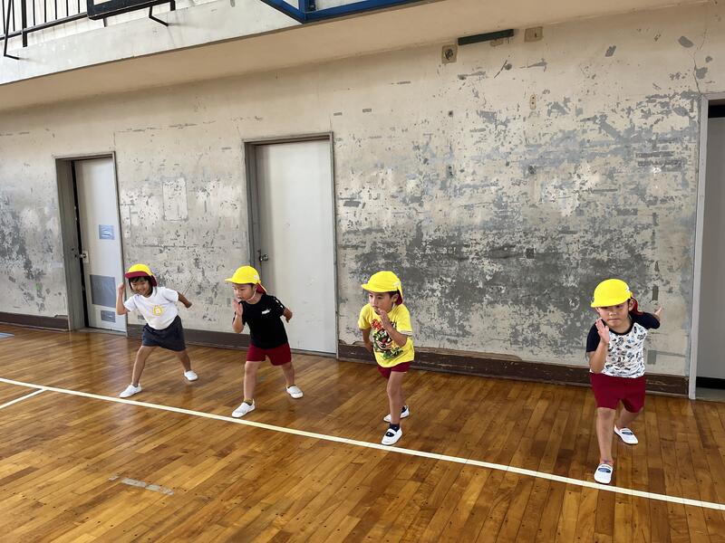 9月28日(土)の運動会に向けて、小学校の体育館をお借りして、かけっこをしました。