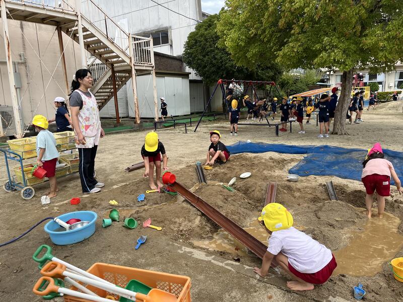 たけのこ組(5歳児)が、外で元気に遊んでいます。