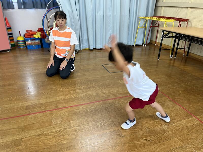 9月の運動会に向けて、かけっこやリレーの練習をしました。