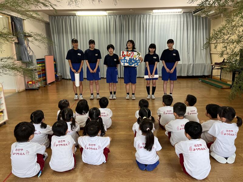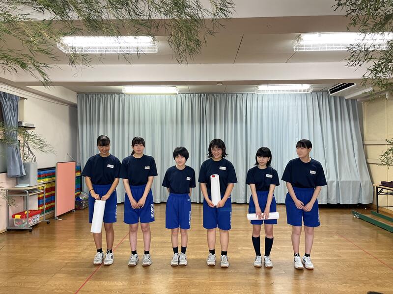 信陵中学校の2年生6人が、職場体験ということで、7月1日(月)から7月5日(金)までの5日間、笹谷幼稚園に来てくれます。一緒にたくさん遊ぼう。