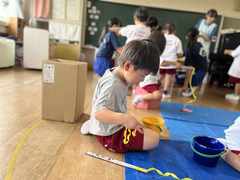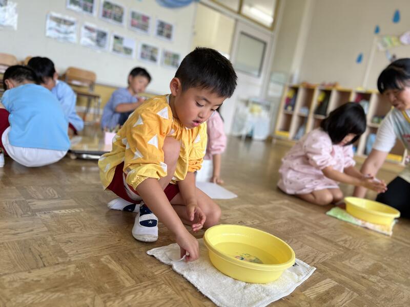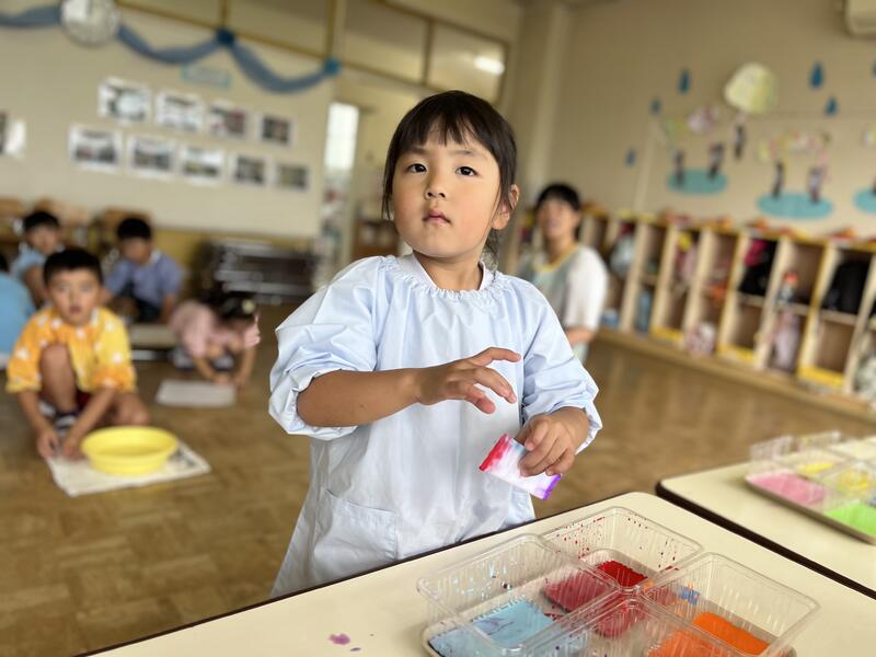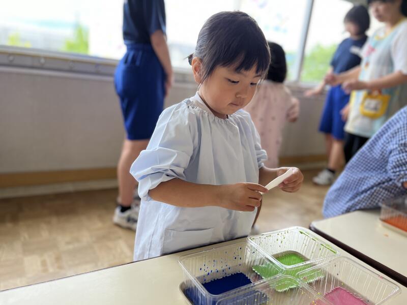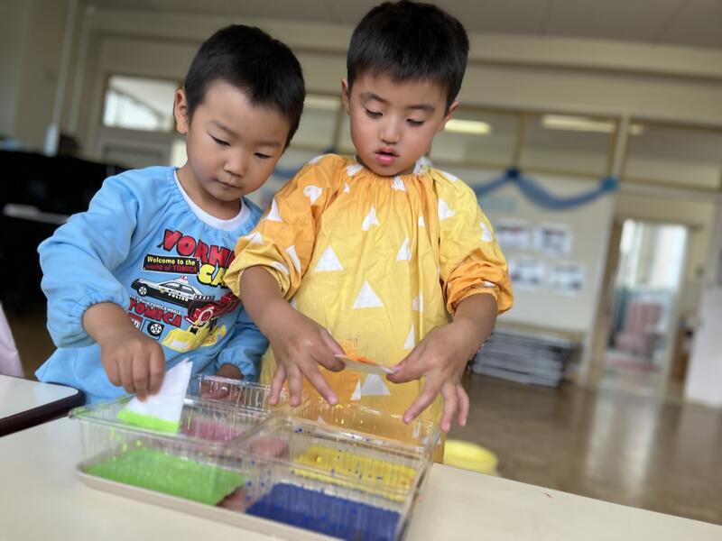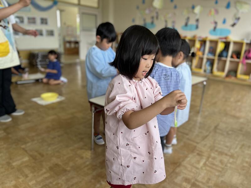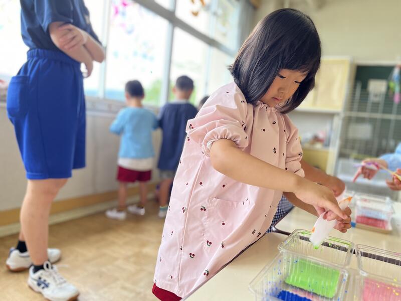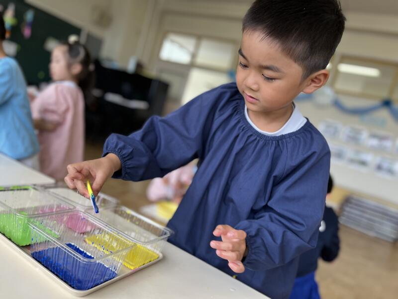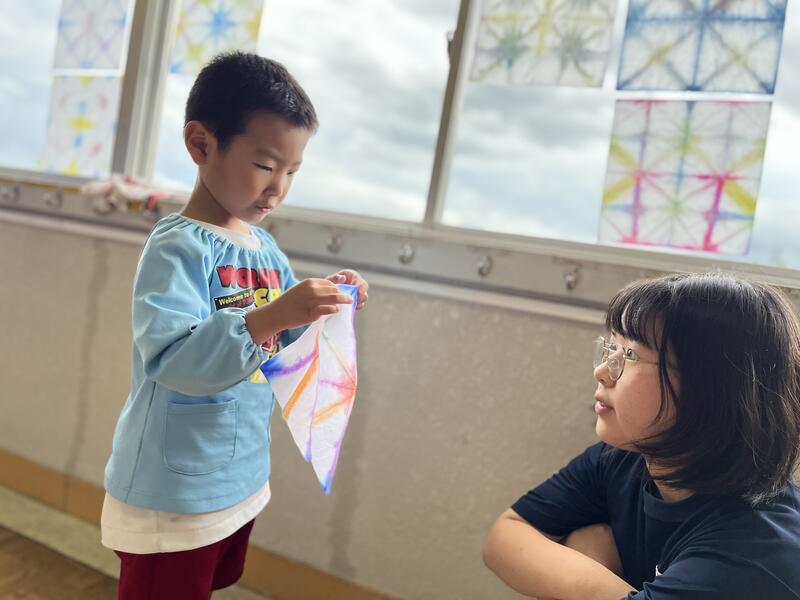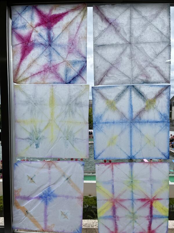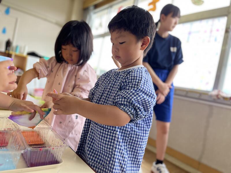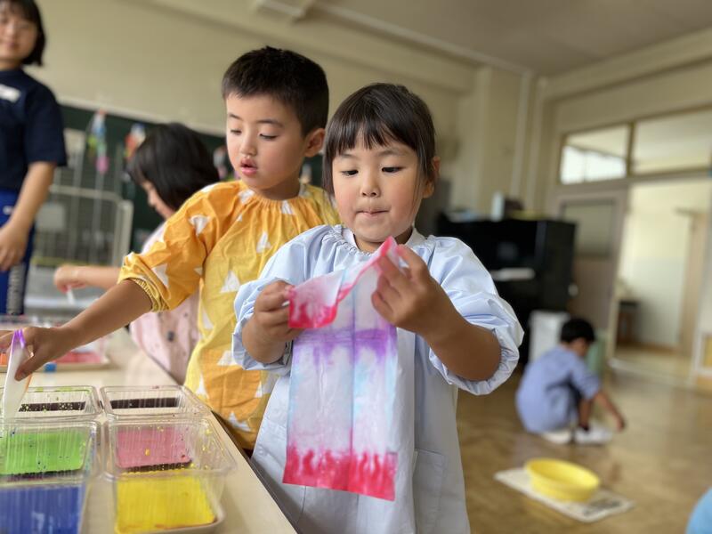 たけのこ組が、浸し染めをしました。