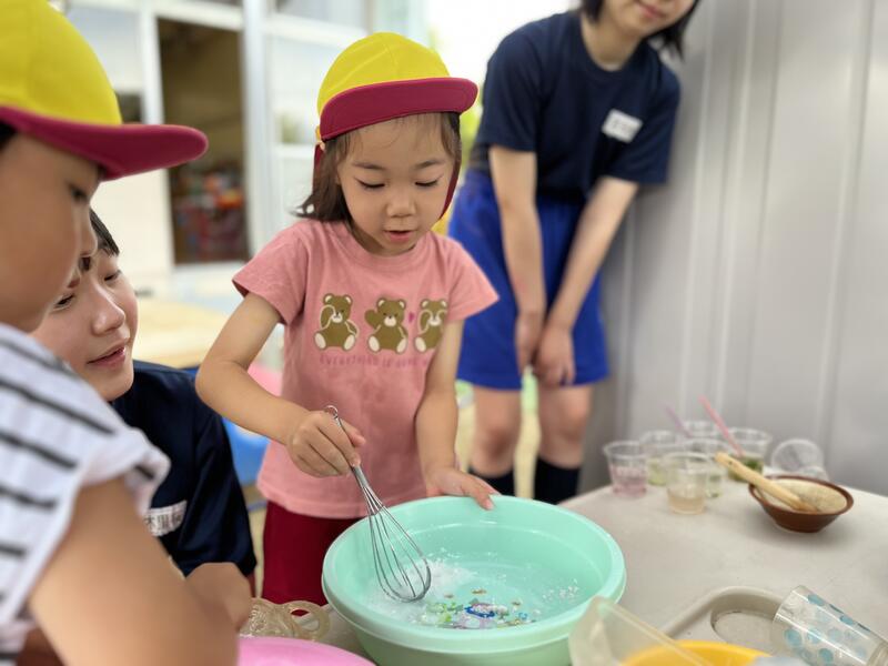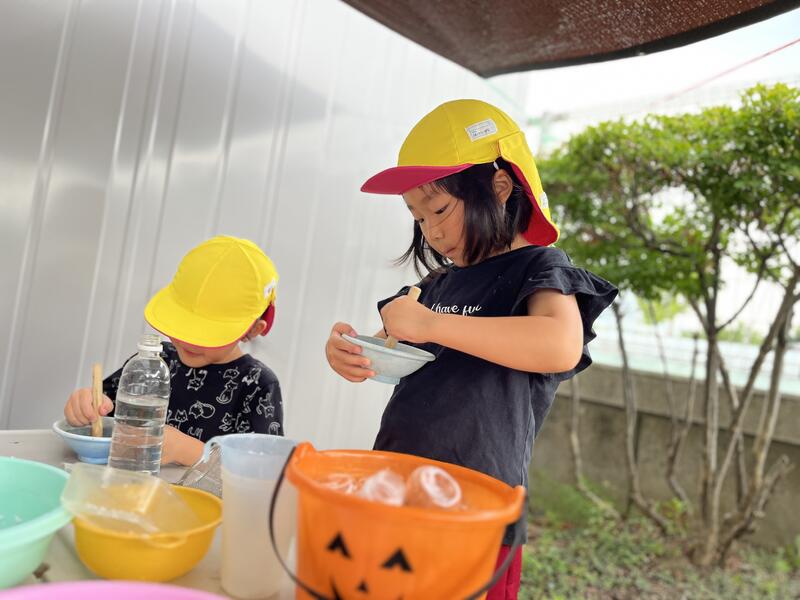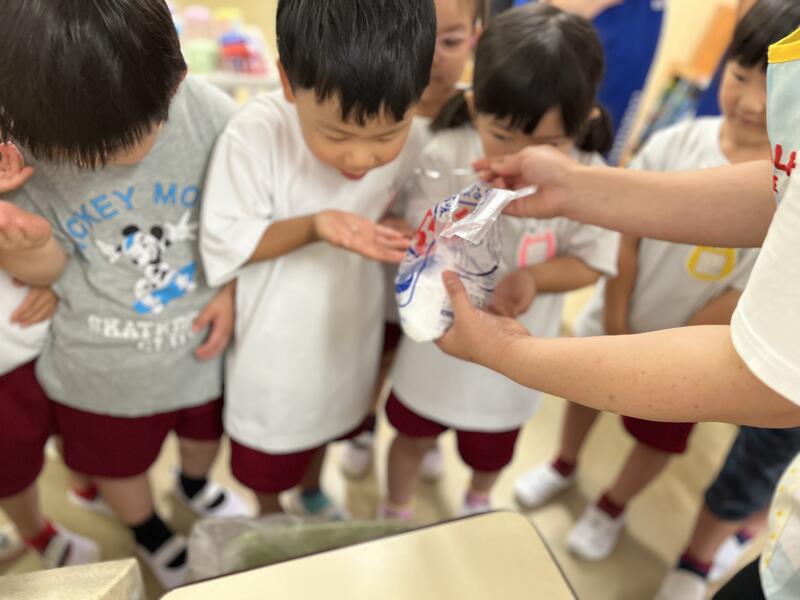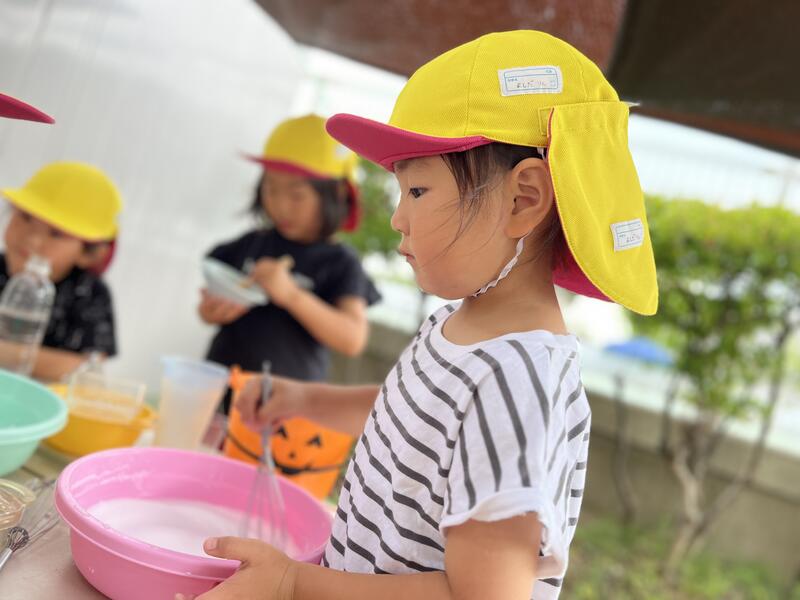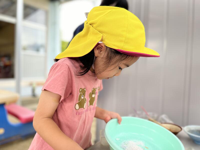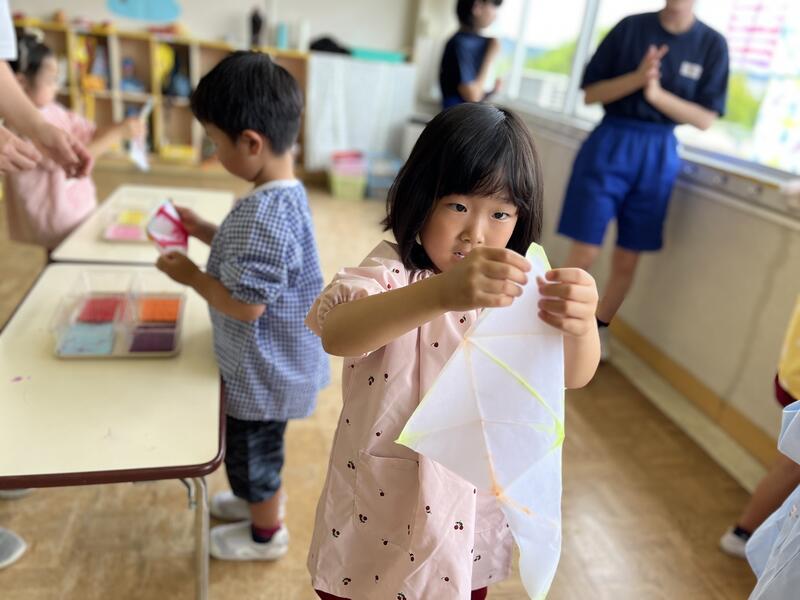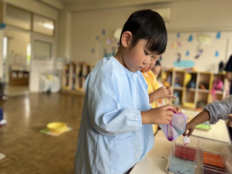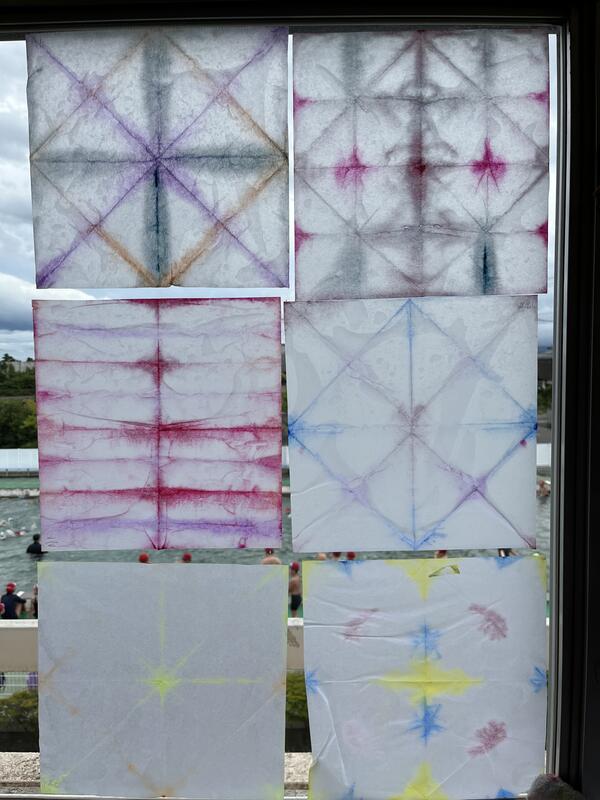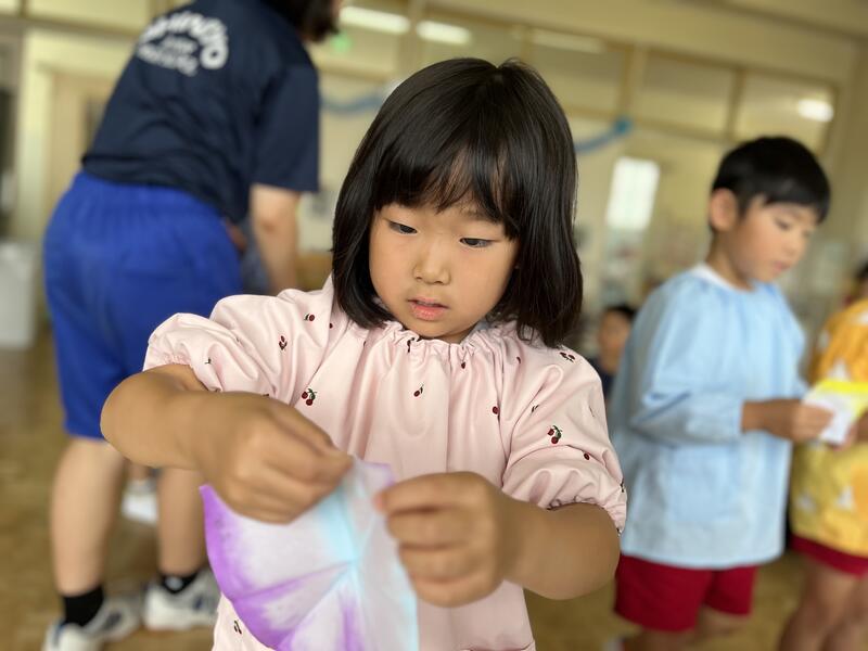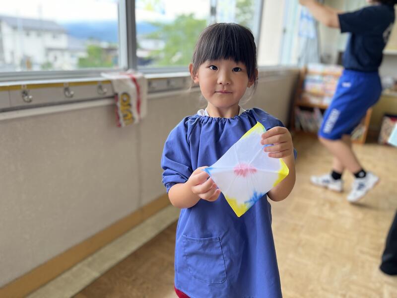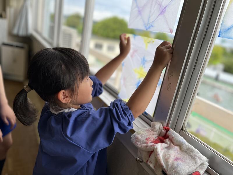 たけのこ組が、浸し染めをしました。