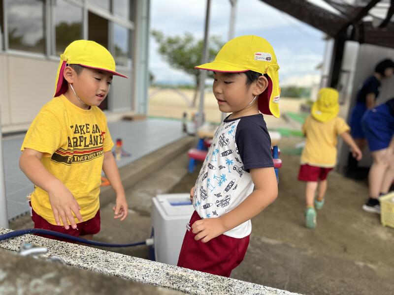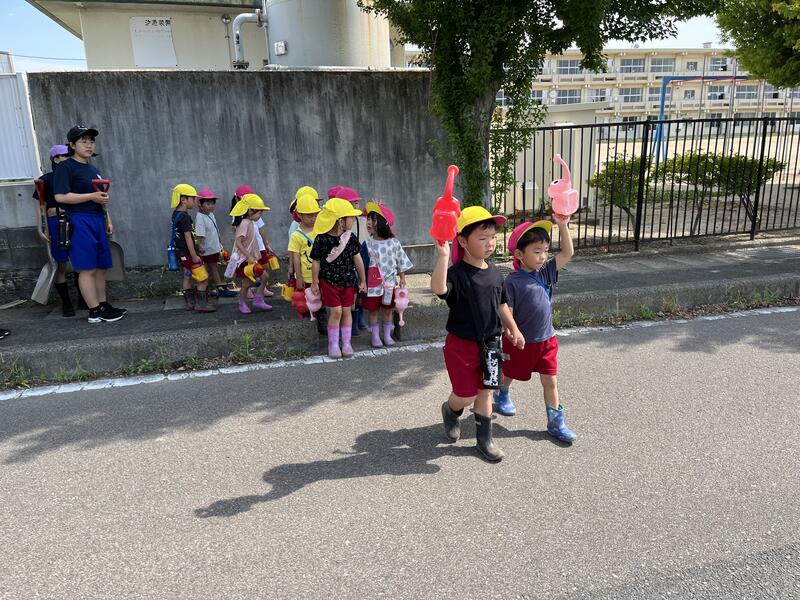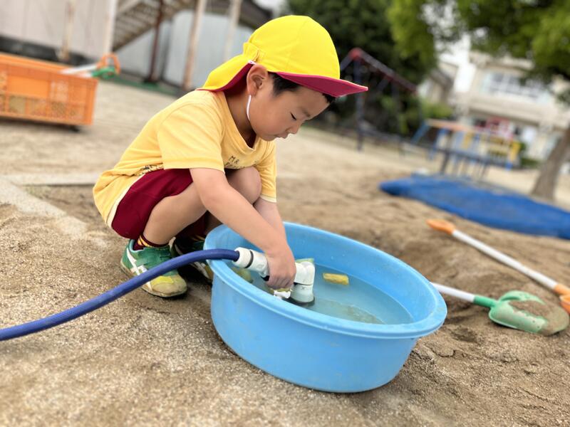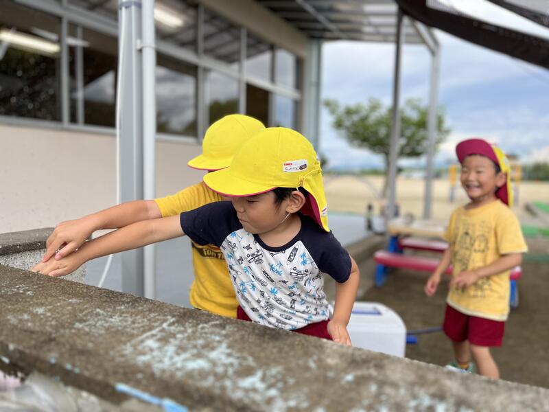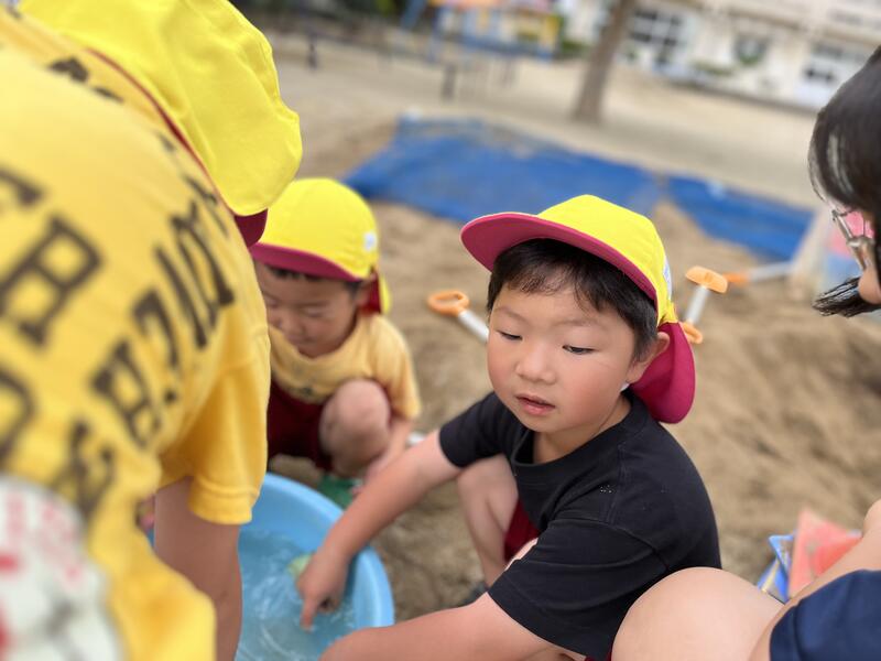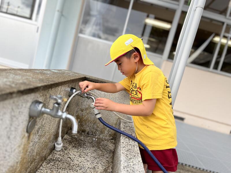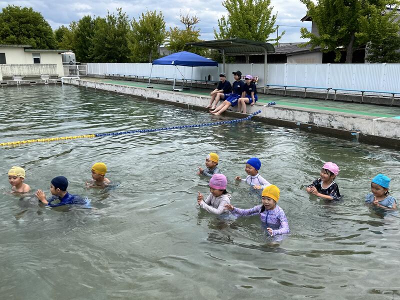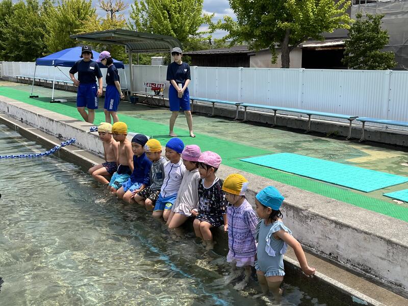 たけのこ組が、小学校のプールに入りました。