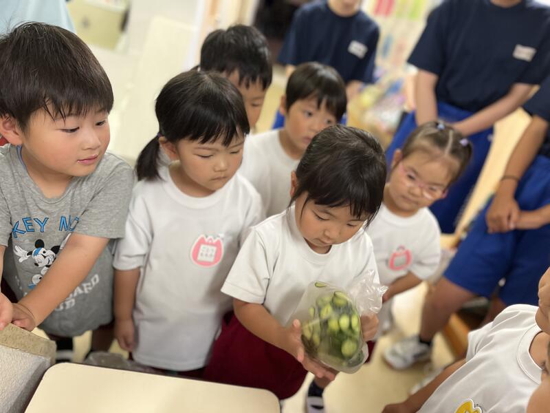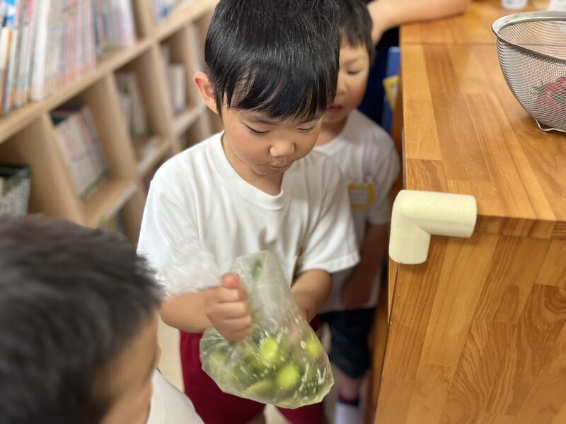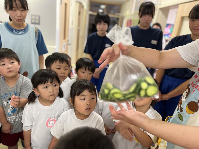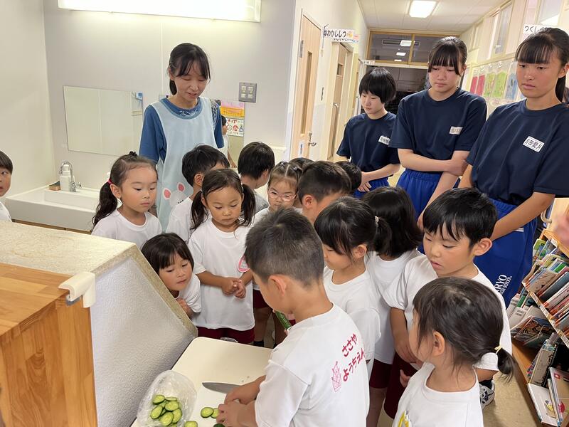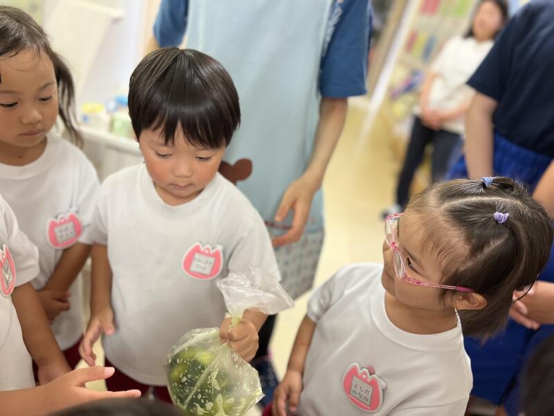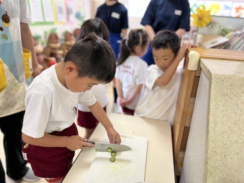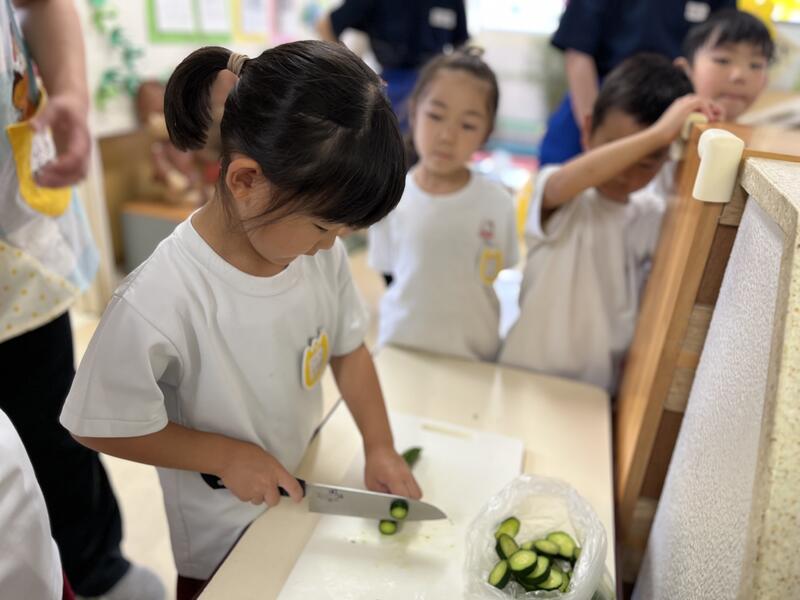みんなでキュウリを切って、塩もみにしました。
