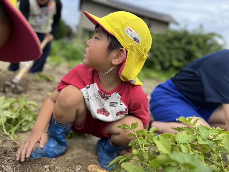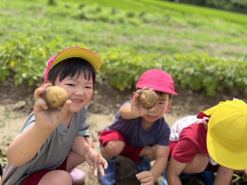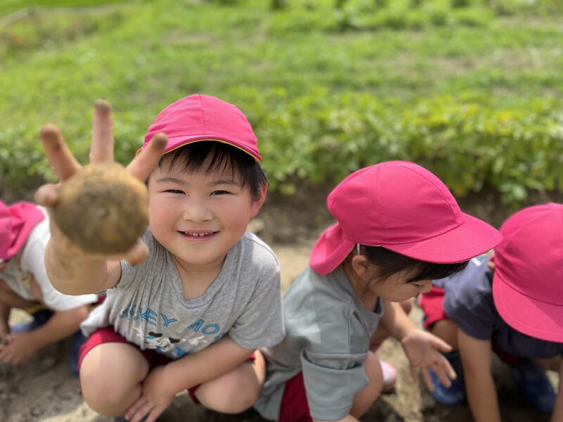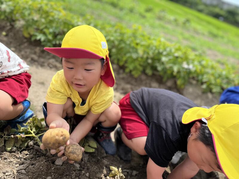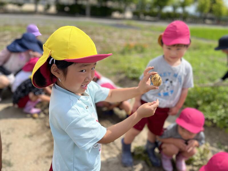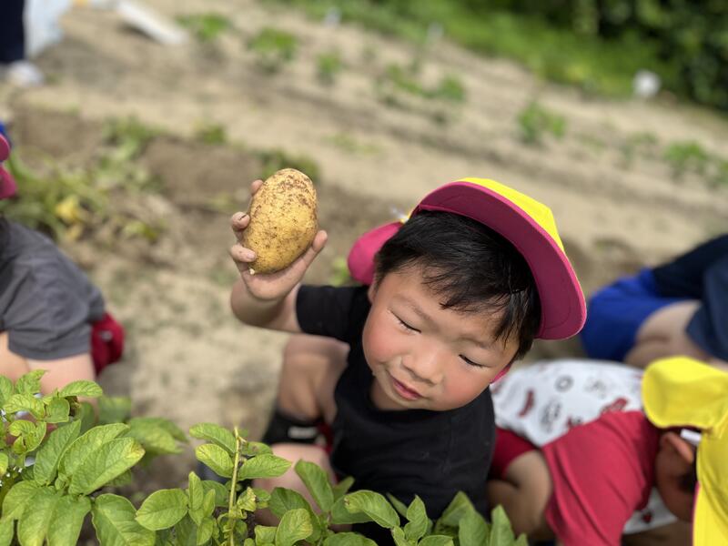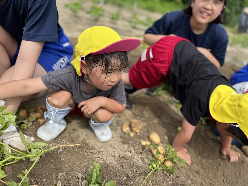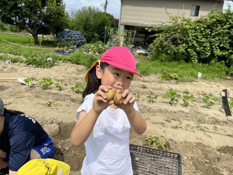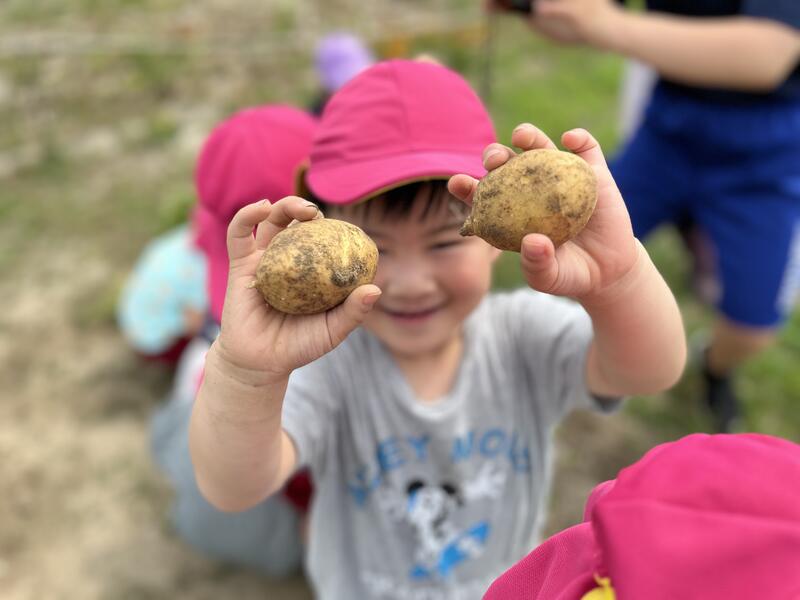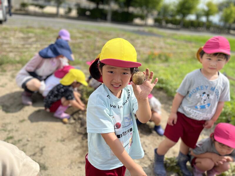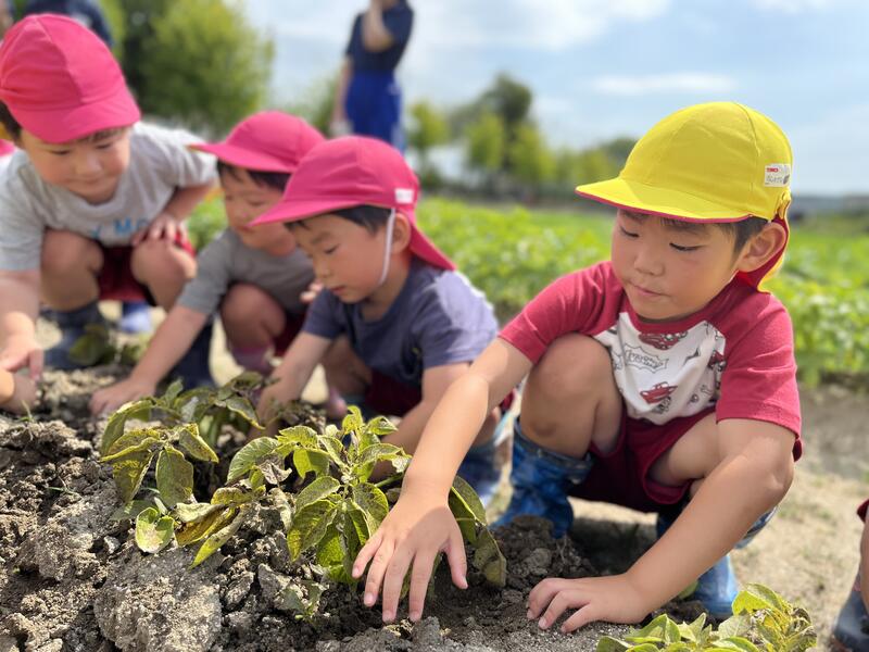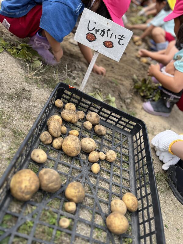 畑に行き、みんなでじゃがいもを掘りました。たくさんとれました。