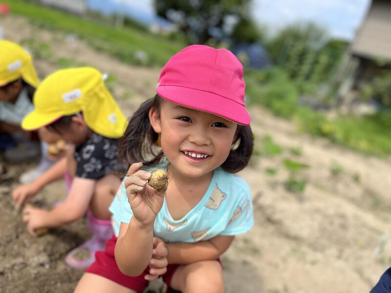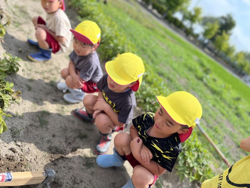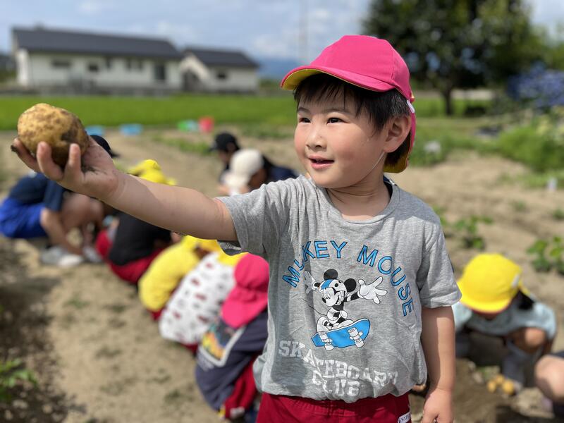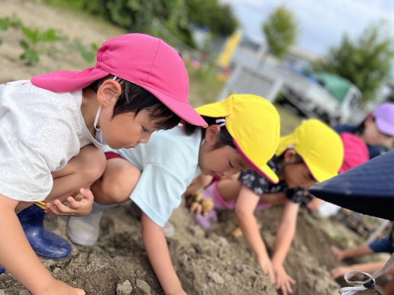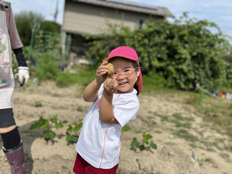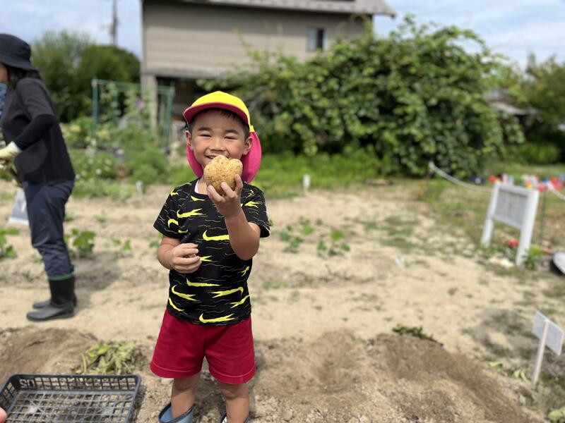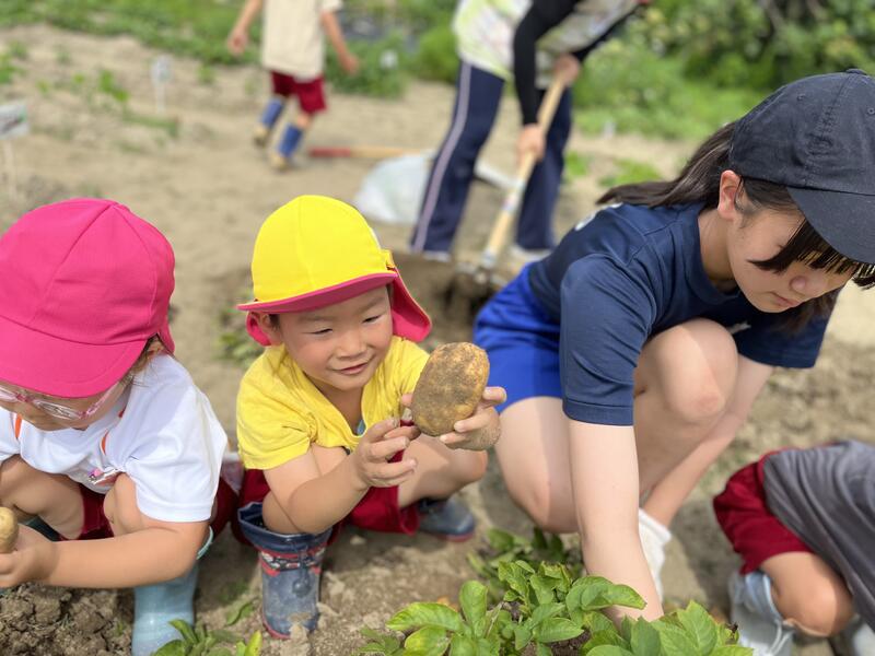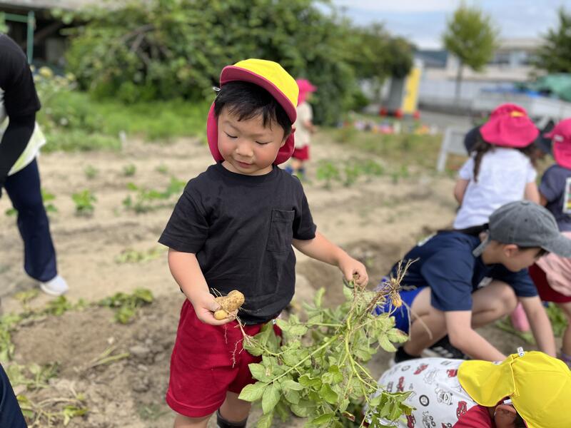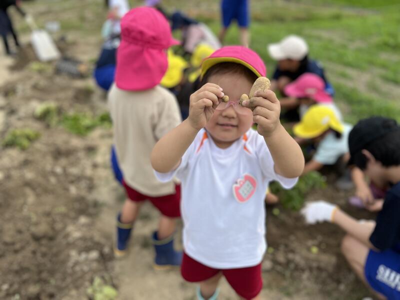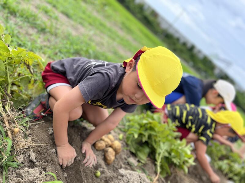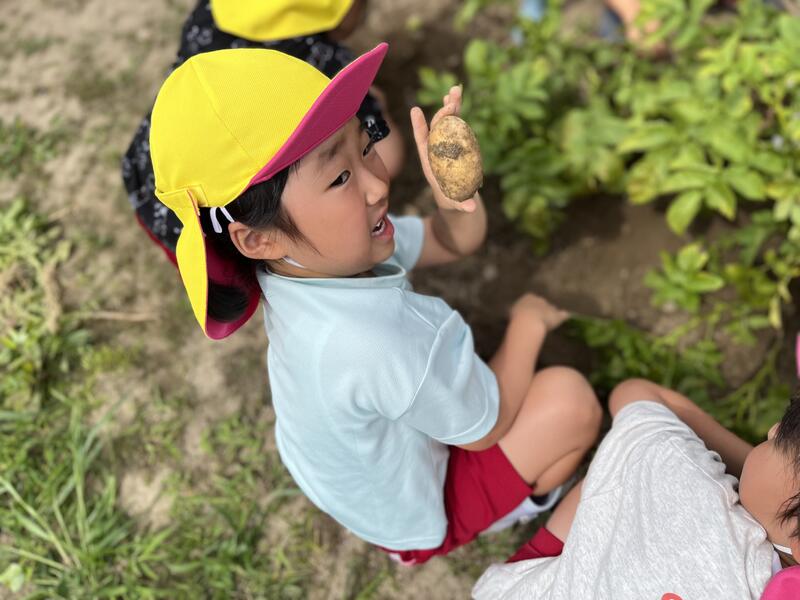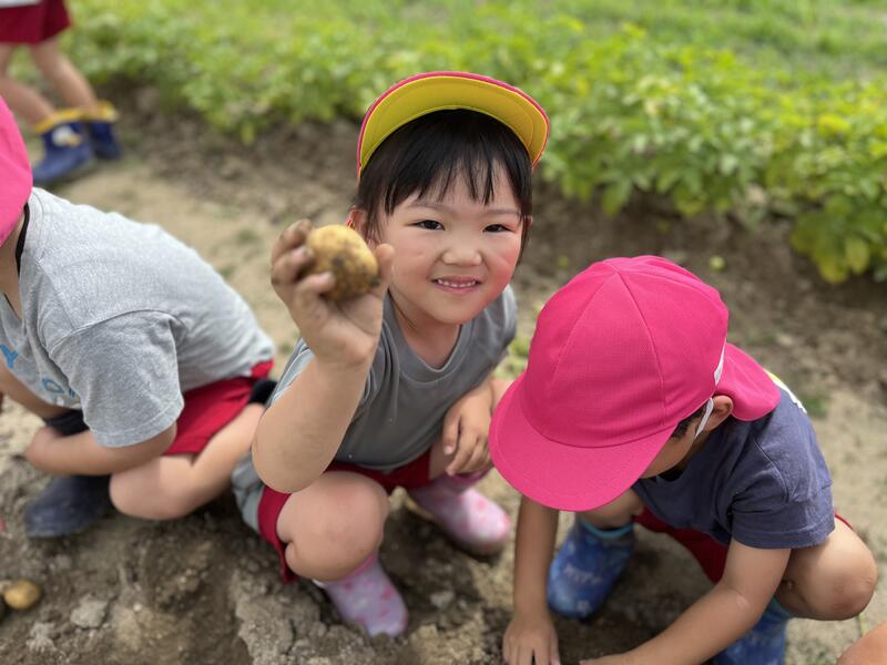 畑に行き、みんなでじゃがいもを掘りました。たくさんとれました。