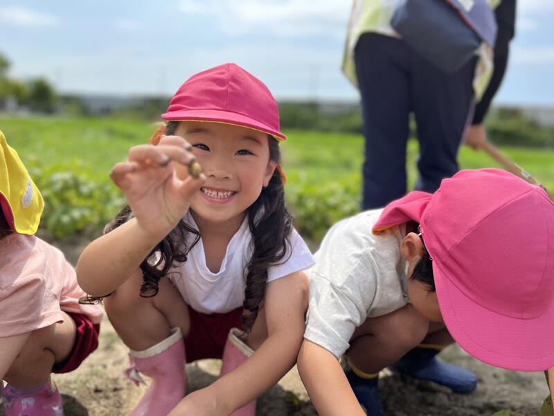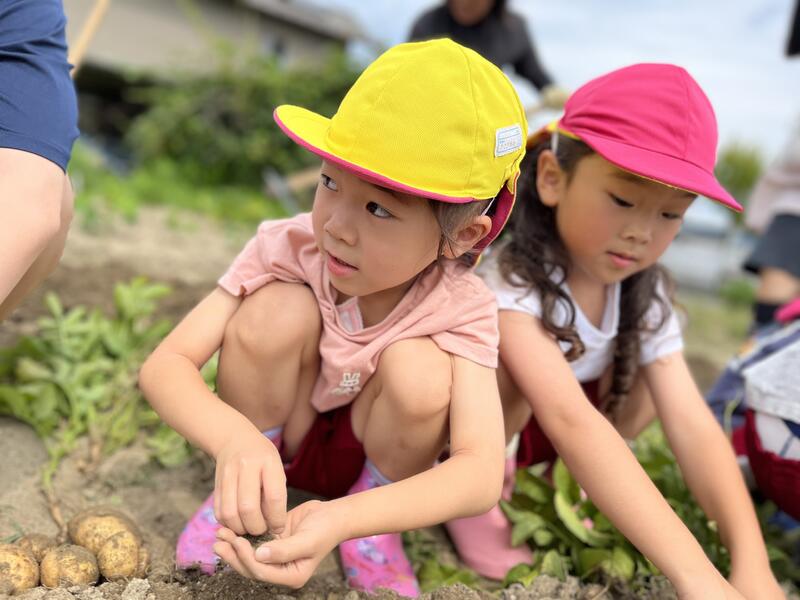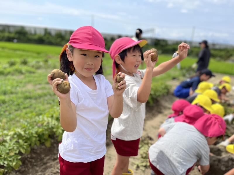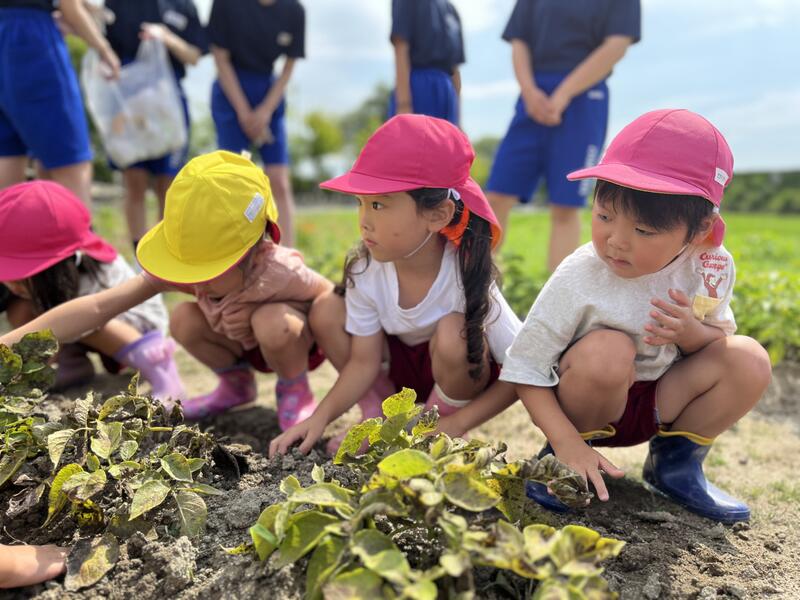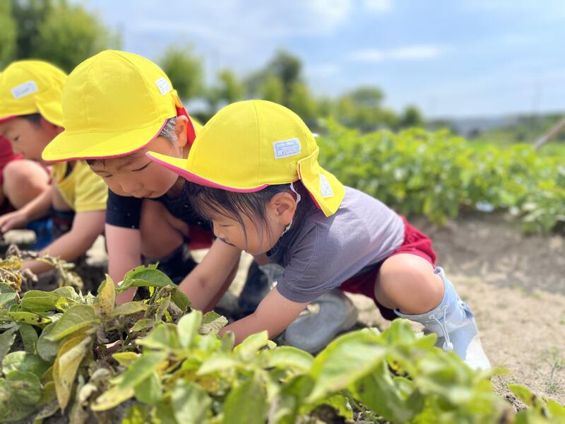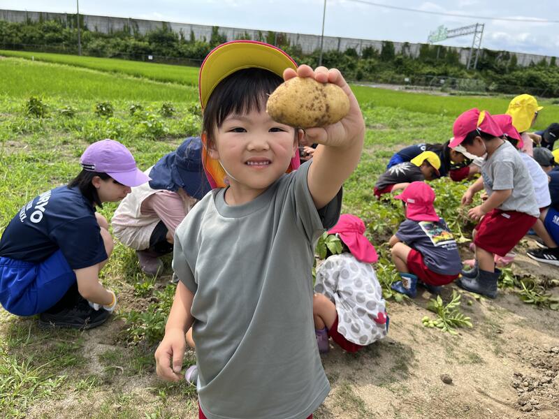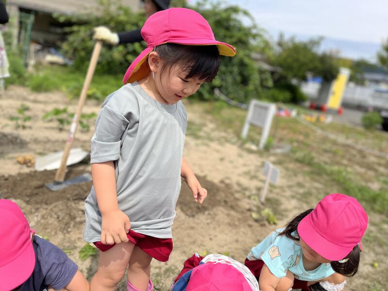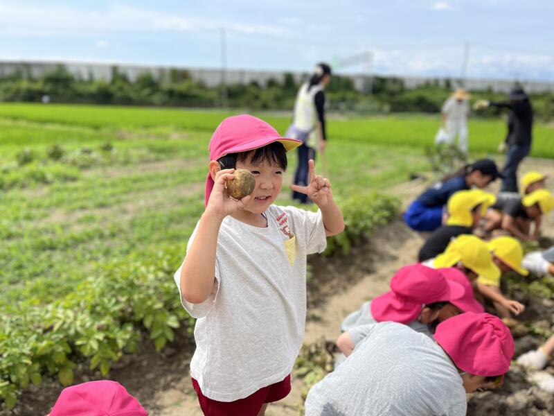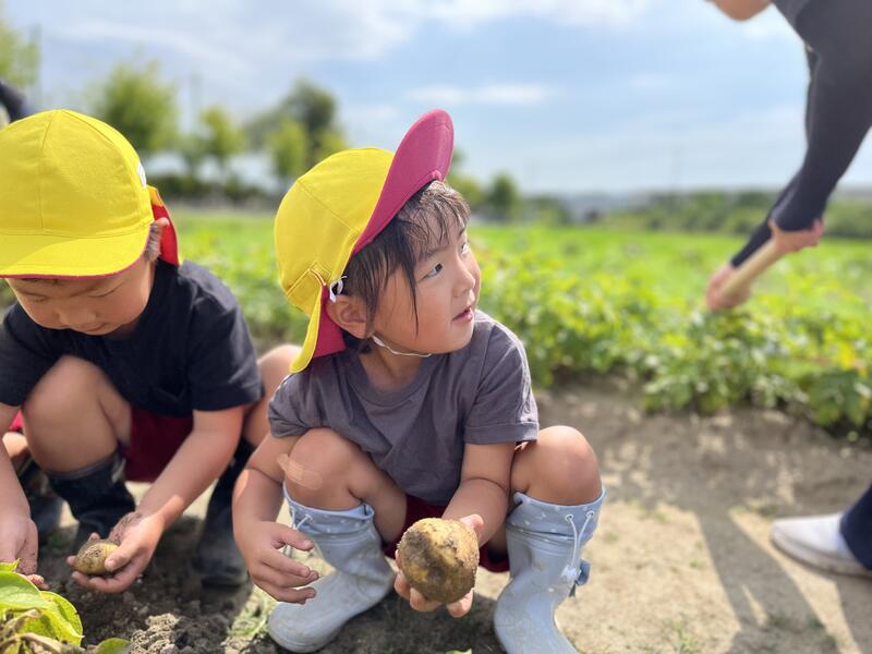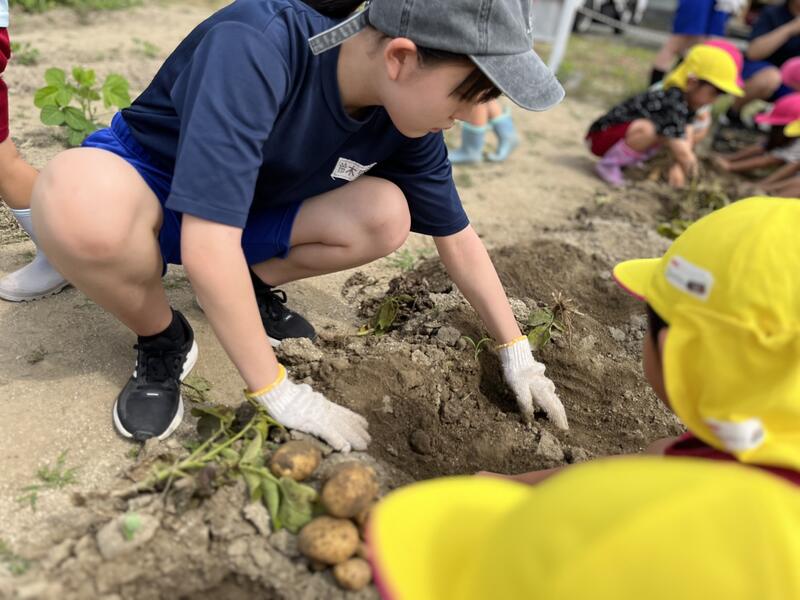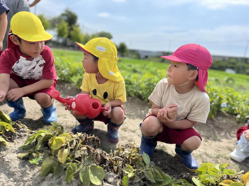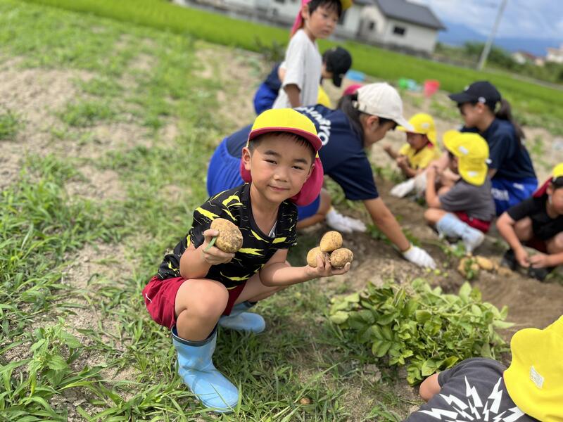 畑に行き、みんなでじゃがいもを掘りました。たくさんとれました。