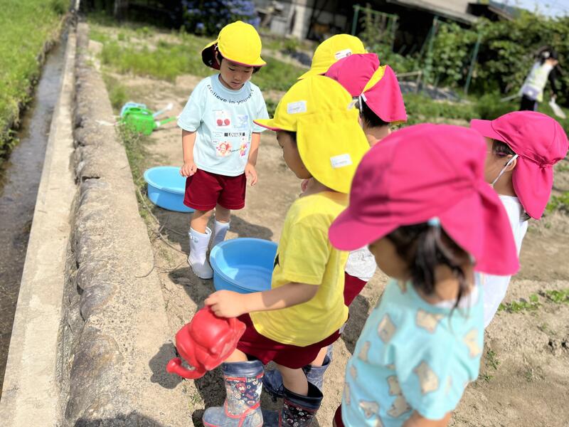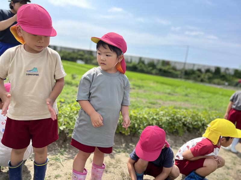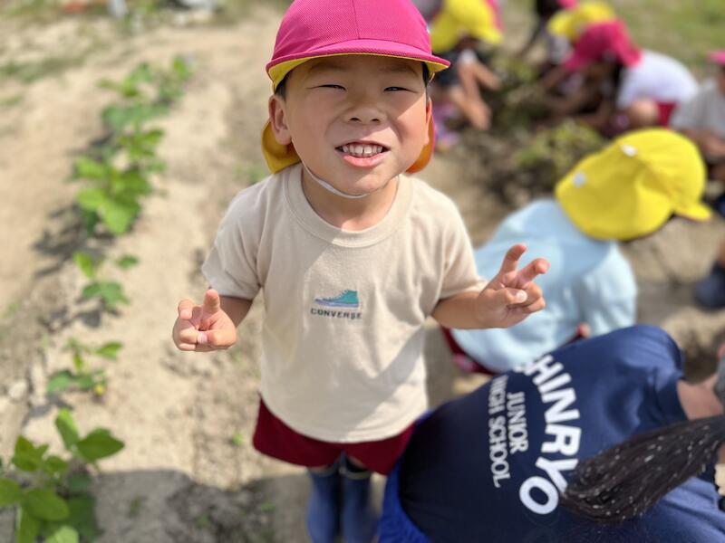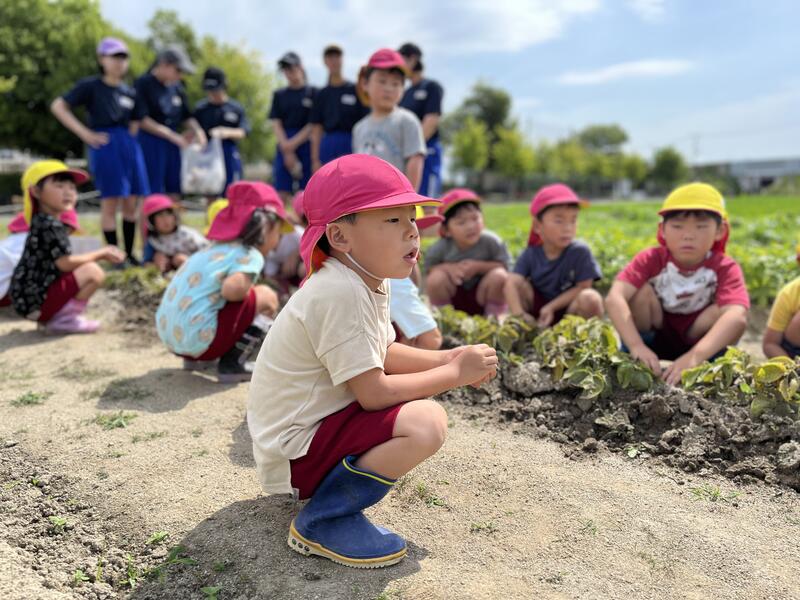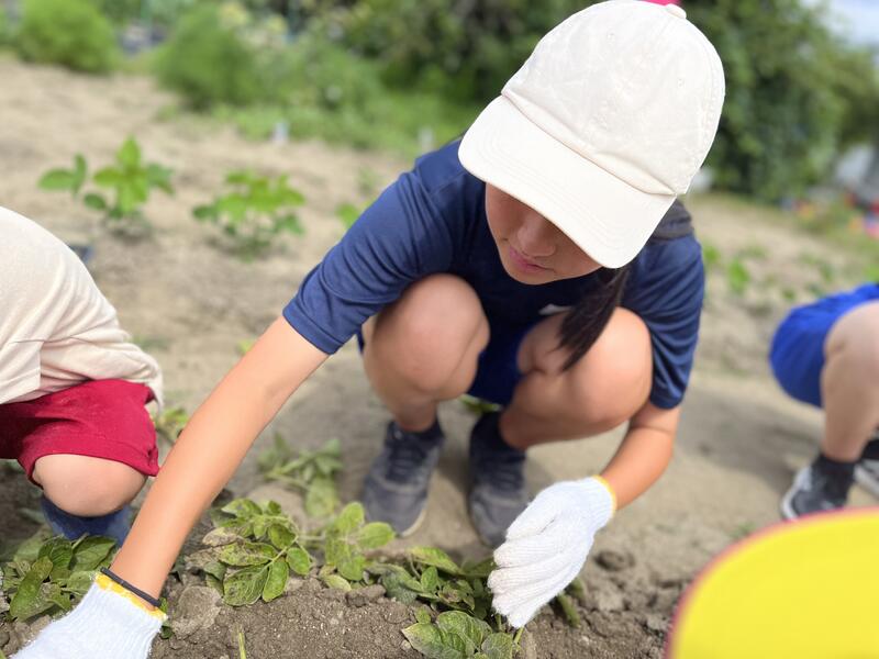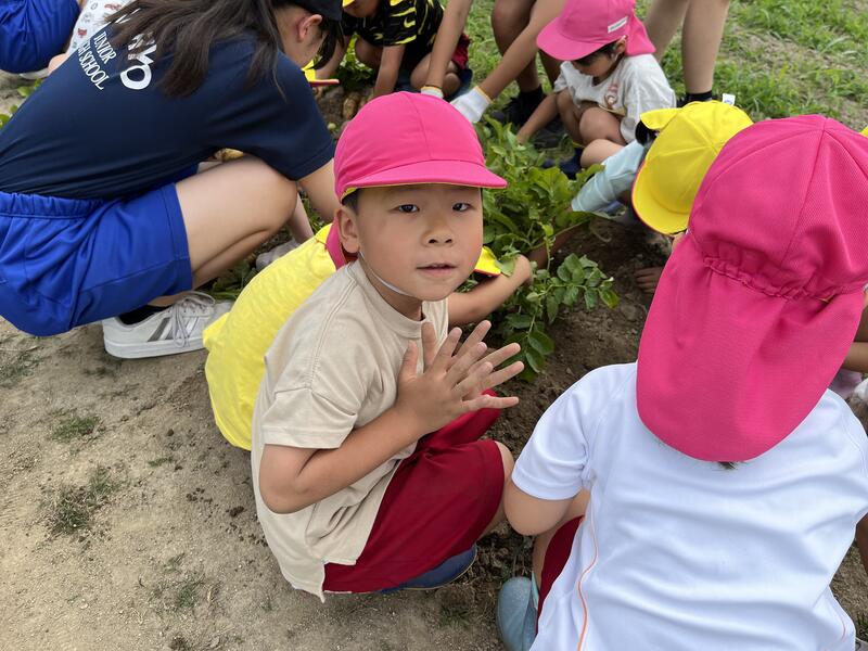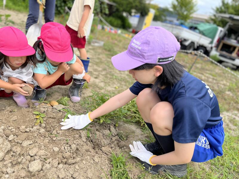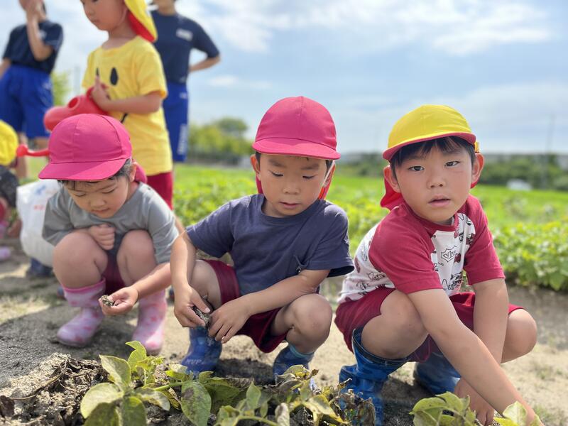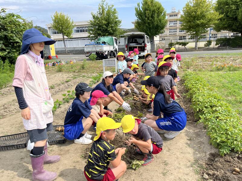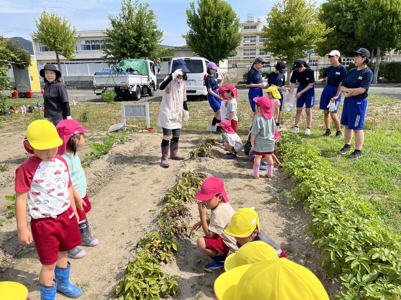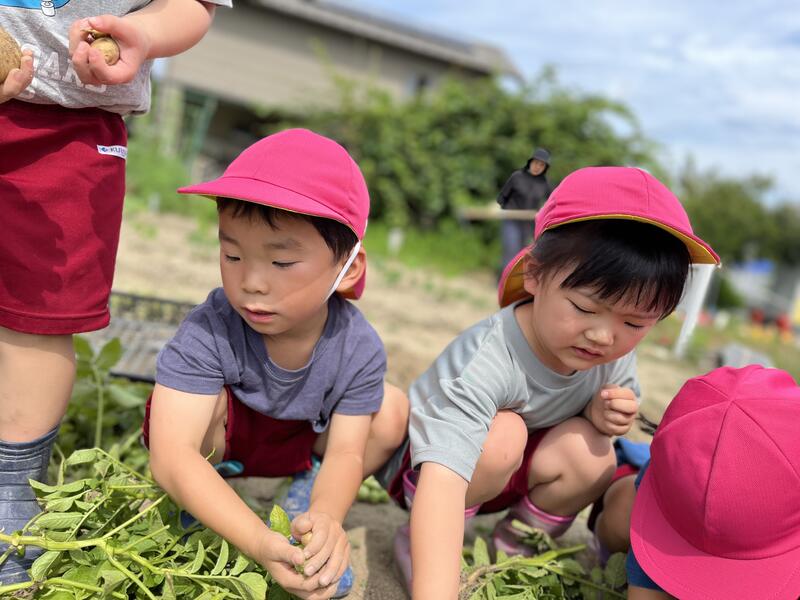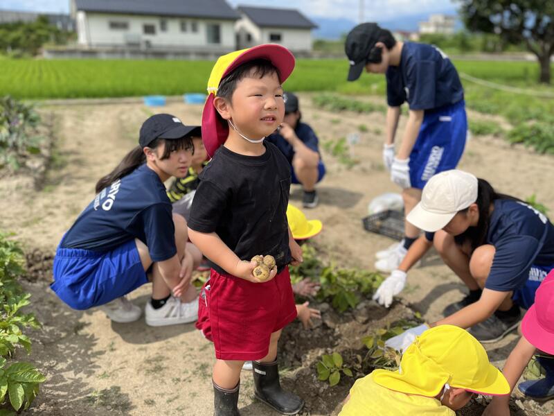 畑に行き、みんなでじゃがいもを掘りました。たくさんとれました。