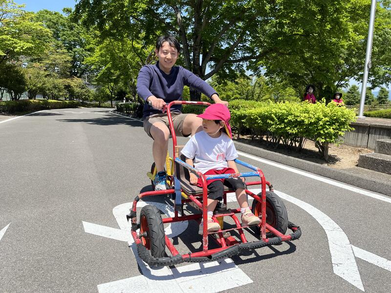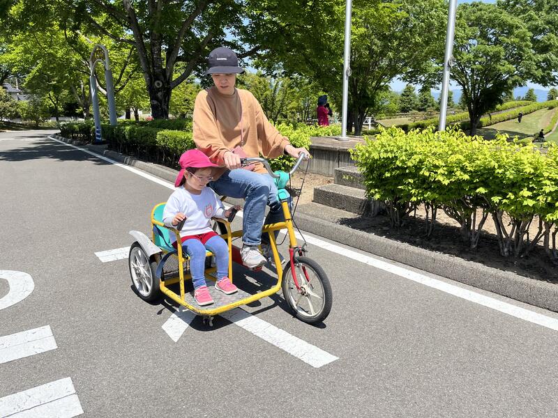サイクルスポーツ広場で、いろいろな乗り物に乗りました。