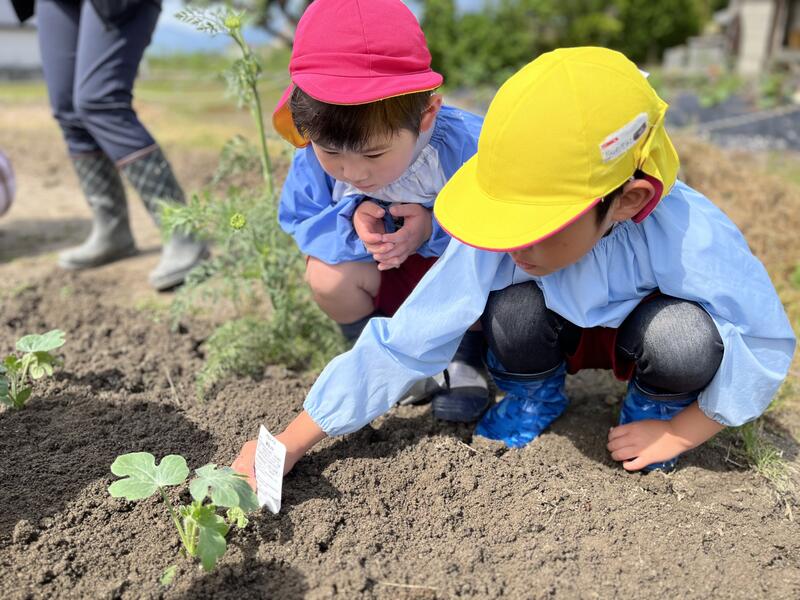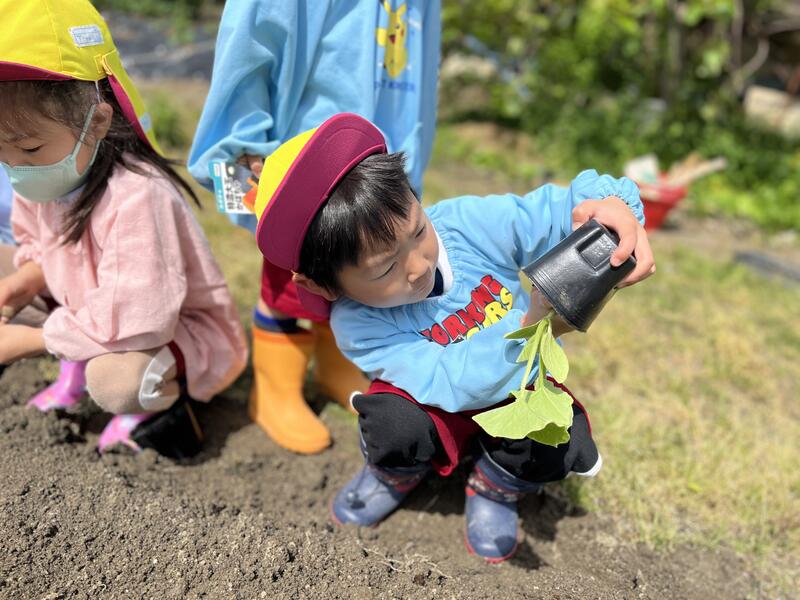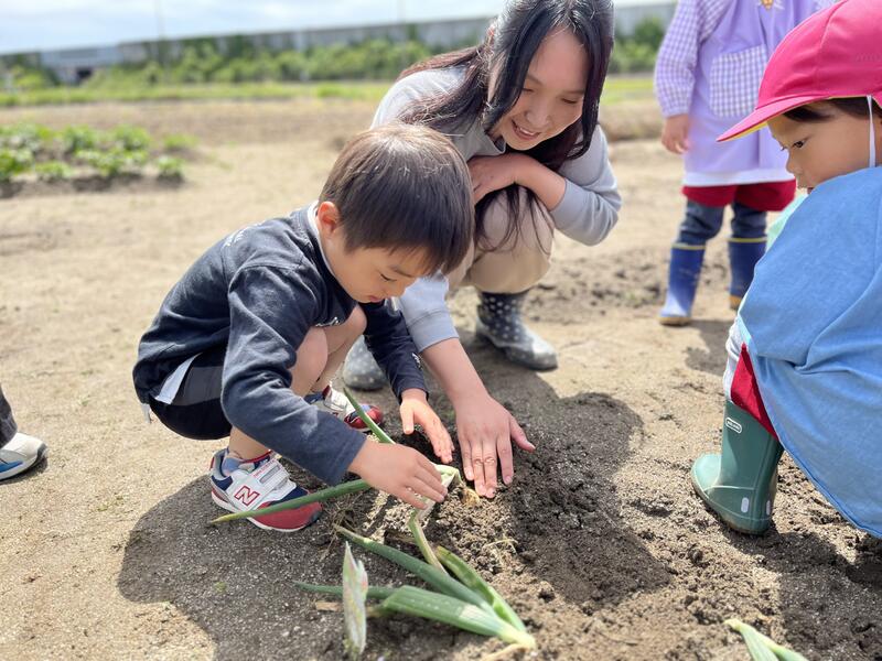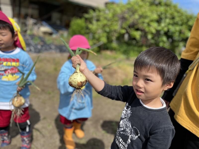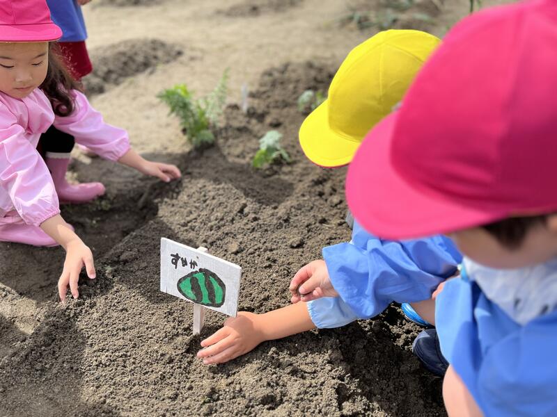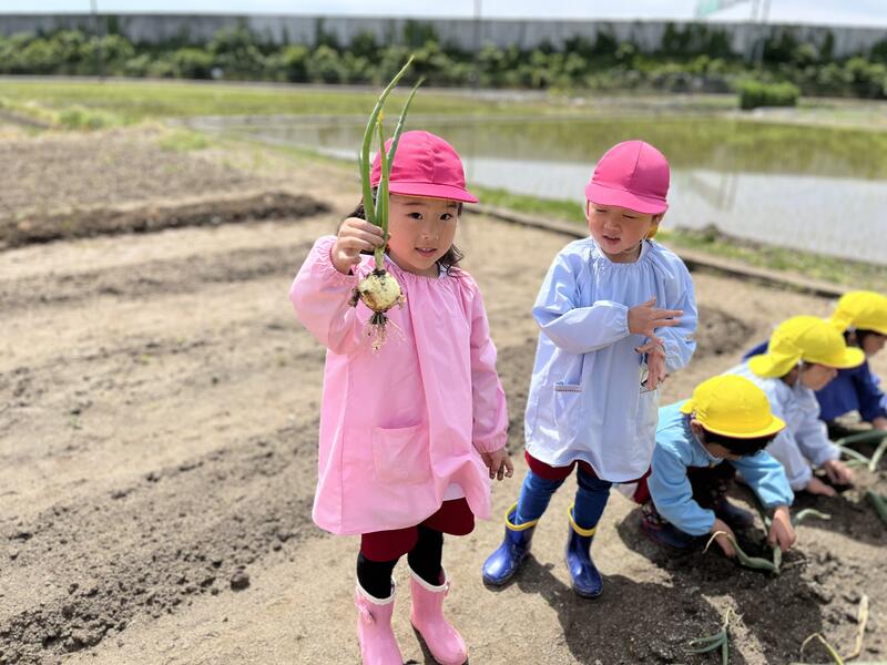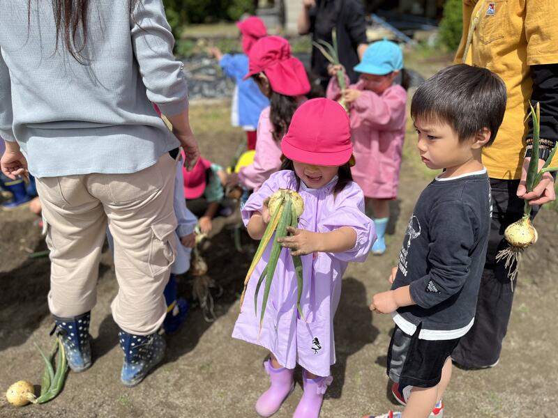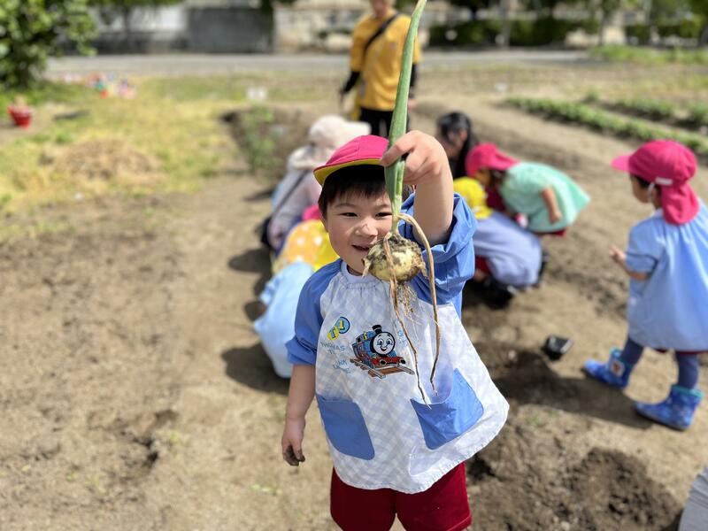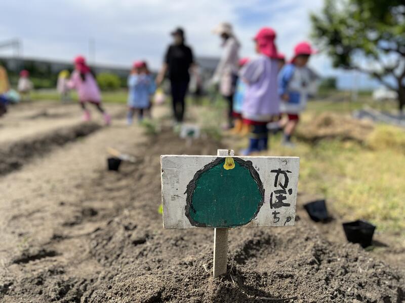 みんなで、幼稚園の畑であるかがやきファームに行きました。