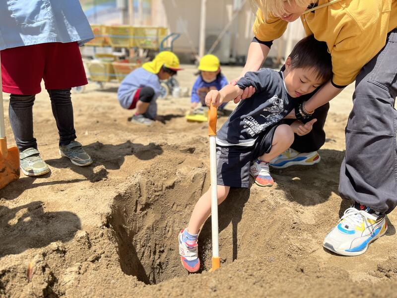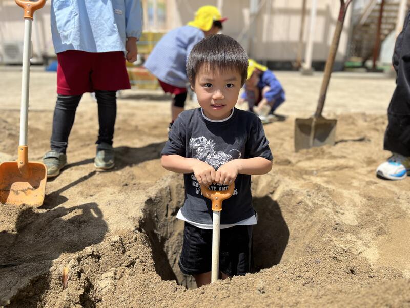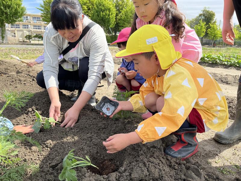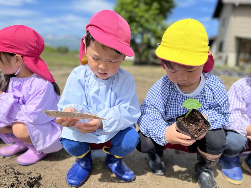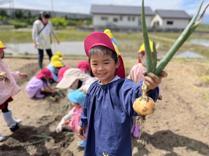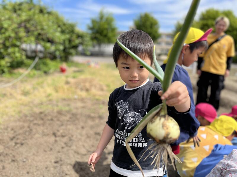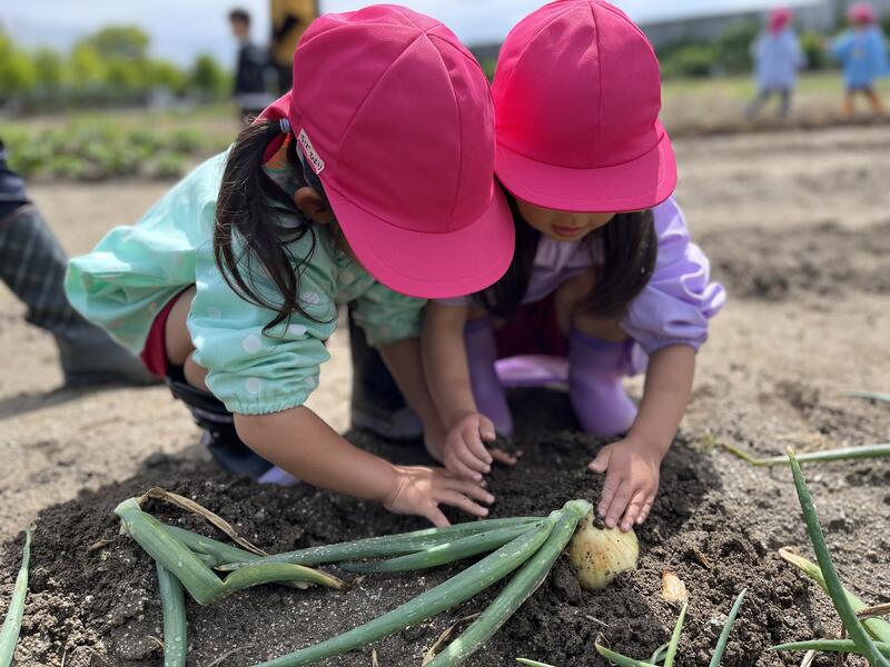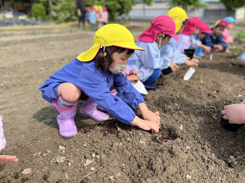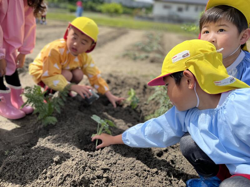 みんなで、幼稚園の畑であるかがやきファームに行きました。
