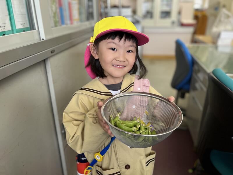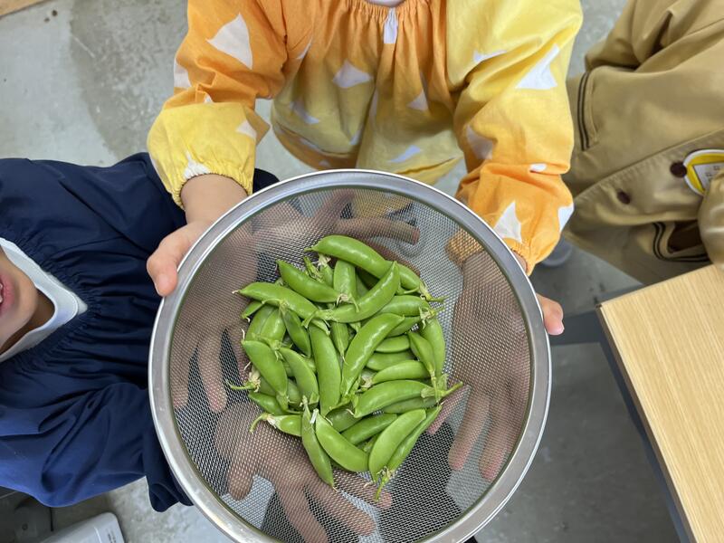 みんなでスナップエンドウを収穫しました。