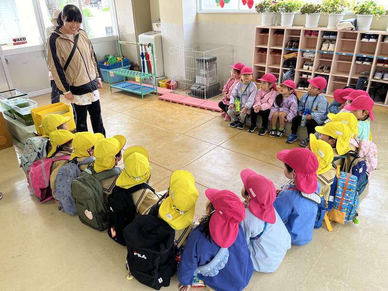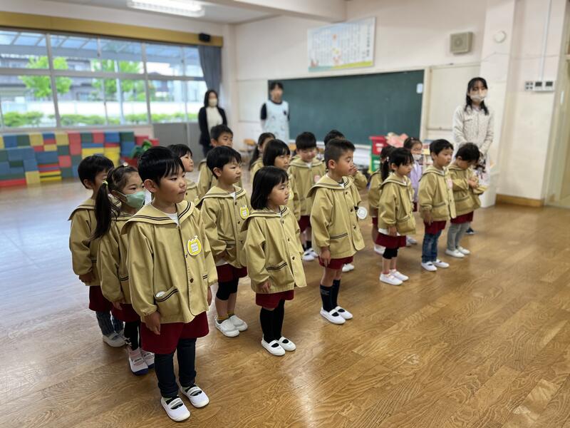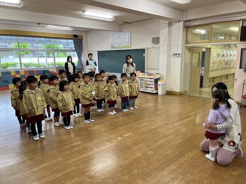 今日から新しいお友達が増えました。遊戯室でみんなに紹介しました。