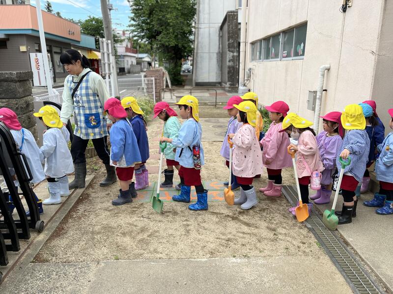たけのこ組(5歳児)は、スコップを持っていきます。