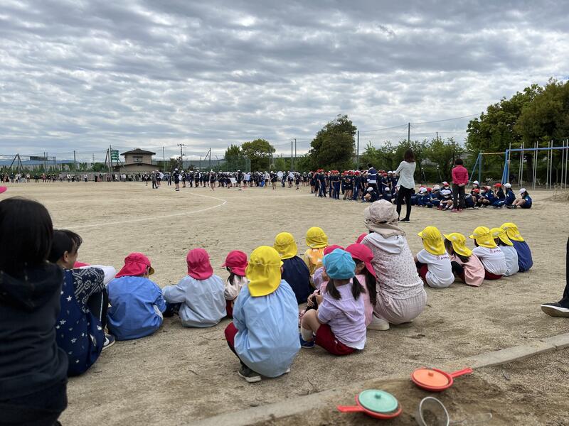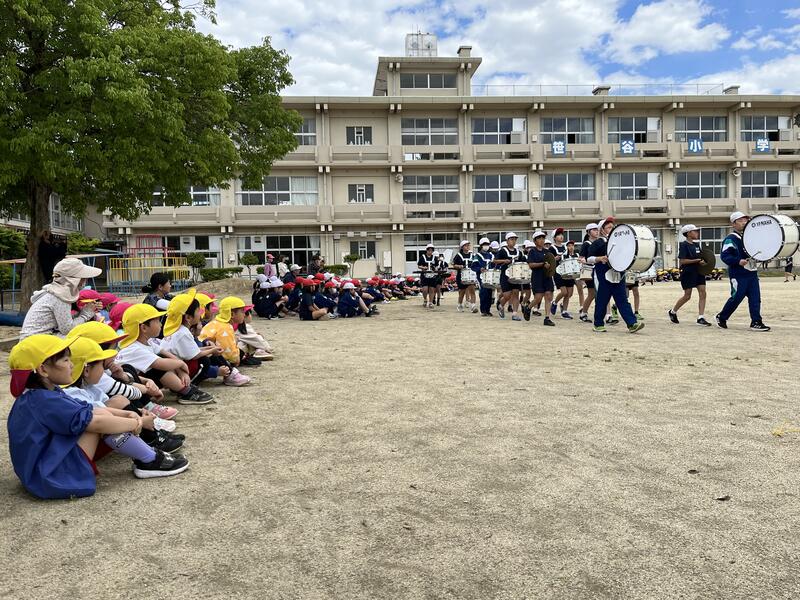すぐお隣の笹谷小学校で、鼓笛隊のお披露目がありました。園児たちもみんなで見ることができました。