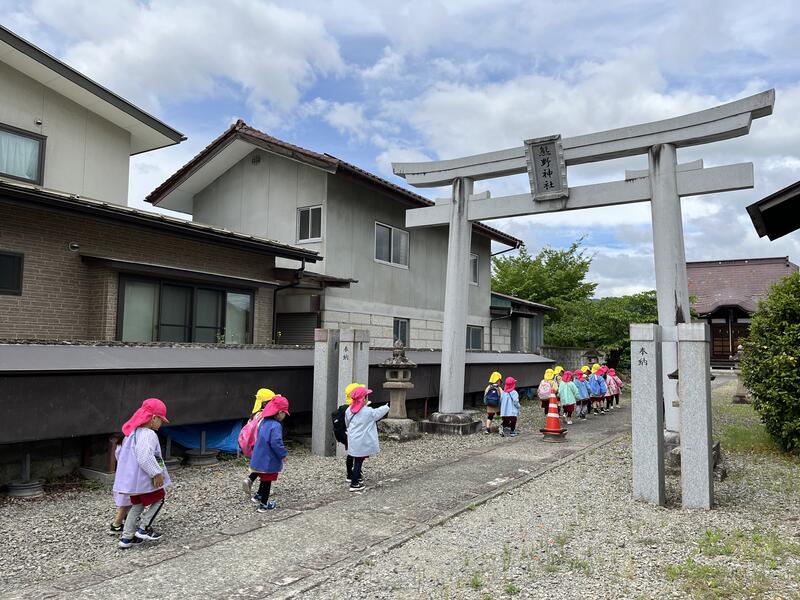 明日の親子遠足に向けて、みんなで近くの熊野神社に行ってきました。