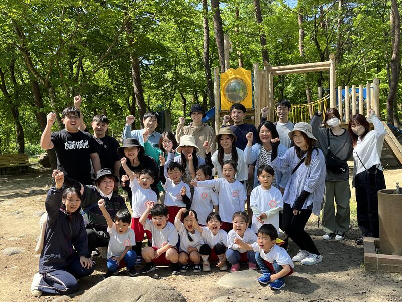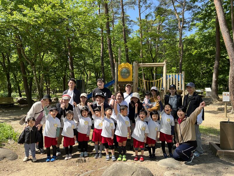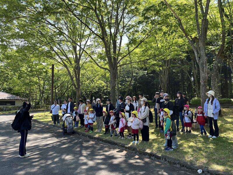 トリムの森で、たけのこ組親子の記念撮影です。