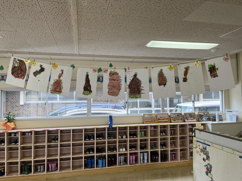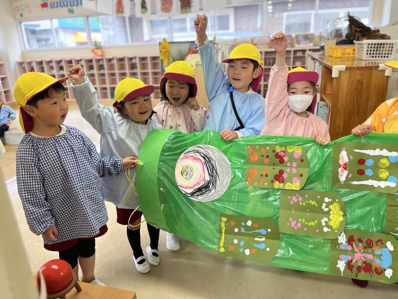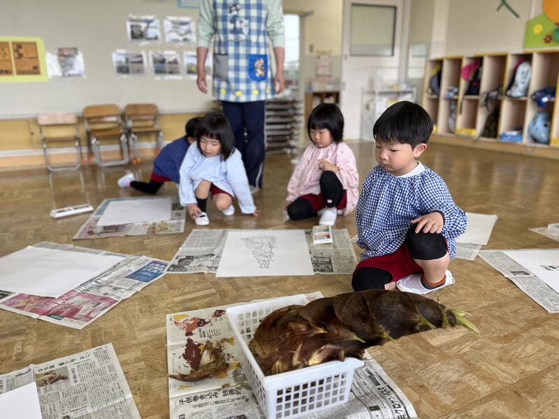 たけのこ組(5歳児)のみんなで、たけのこの絵を描きました。
