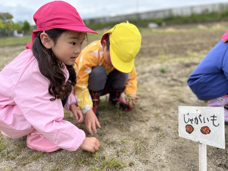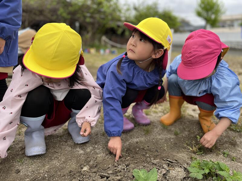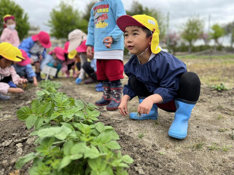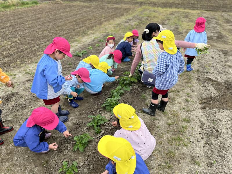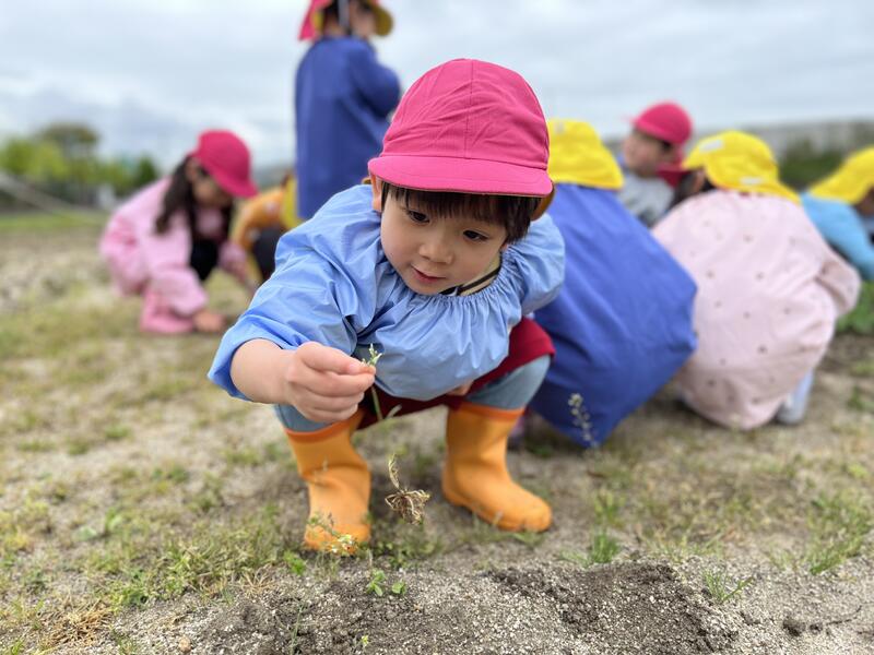 つくし組(4歳児)も、たけのこ組(5歳児)と一緒に草を取ります。だいぶ慣れてきました。