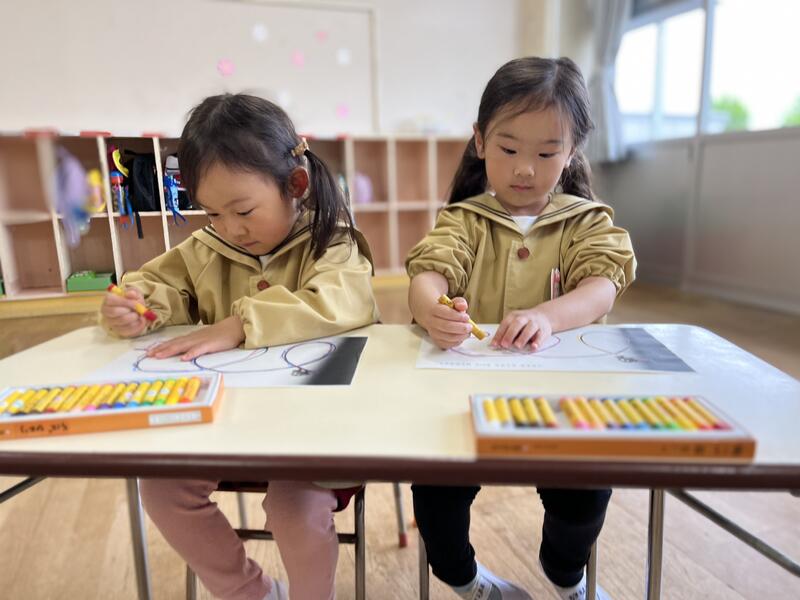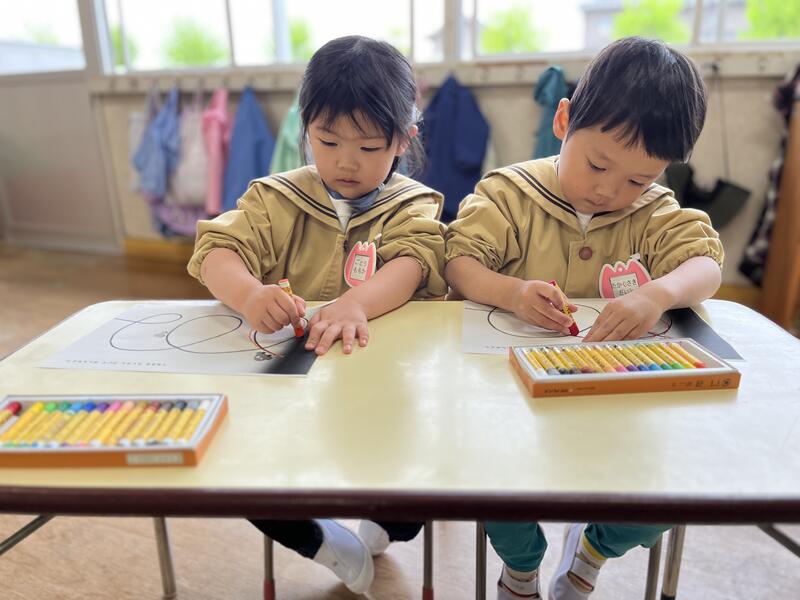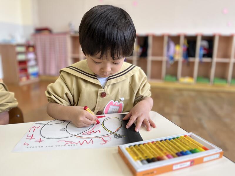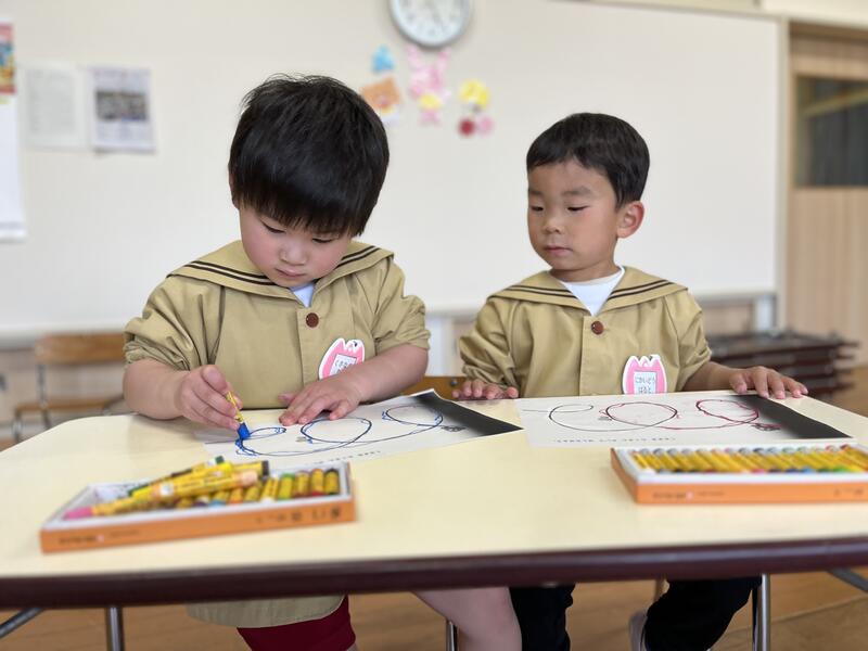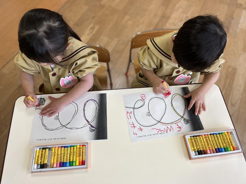 つくし組のみんなが、クレパスを使って線などをかいてみました。