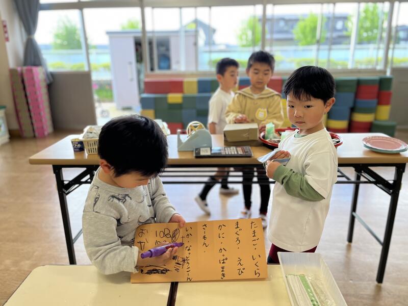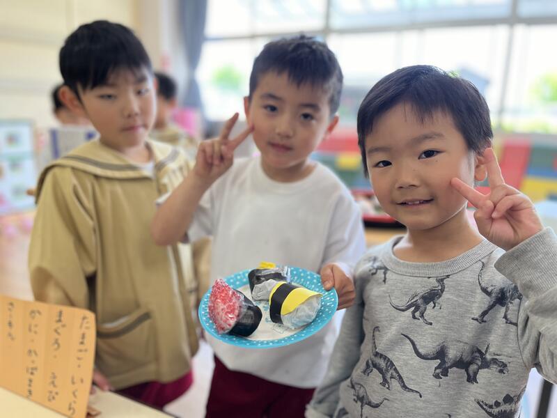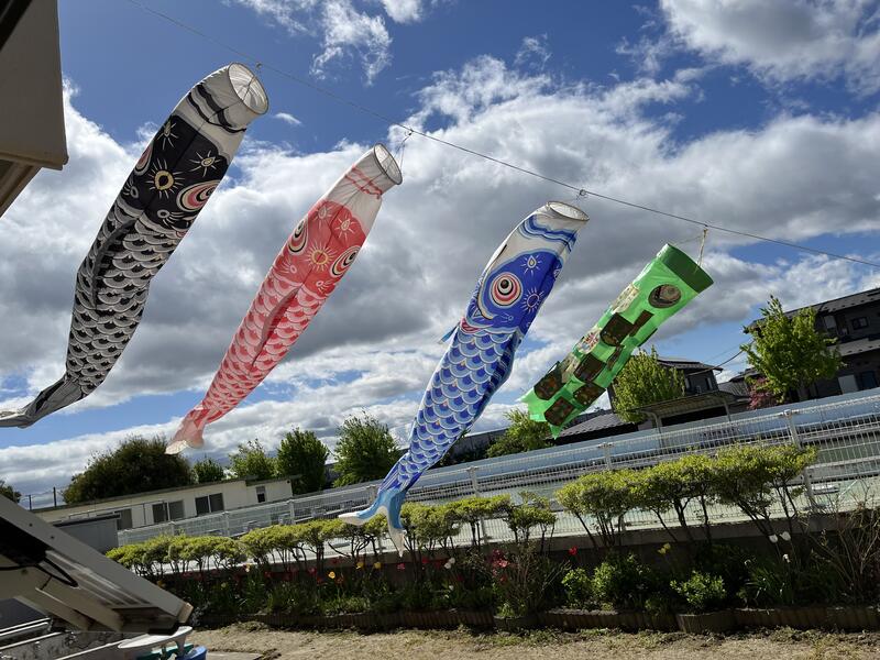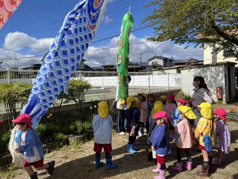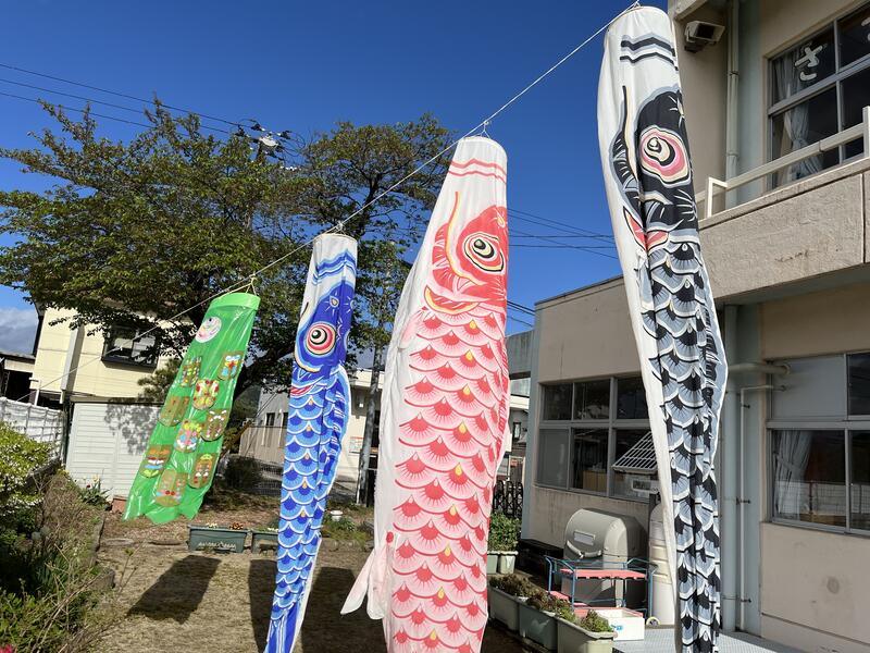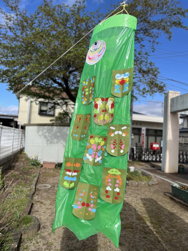今日から、こいのぼりが増えました。園児たちが作った子鯉です。