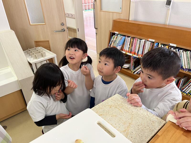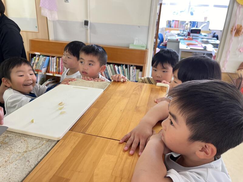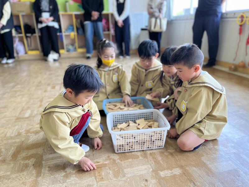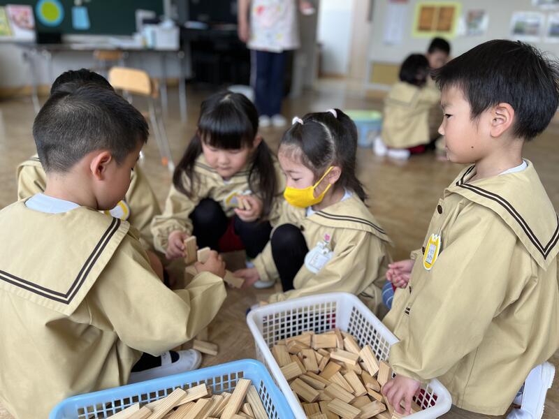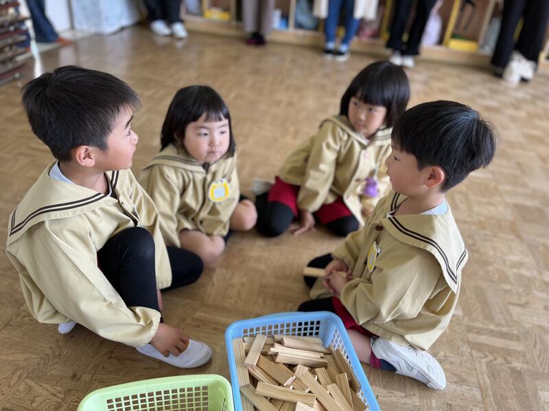 たけのこ組(5歳児)は、グループで話し合っています。