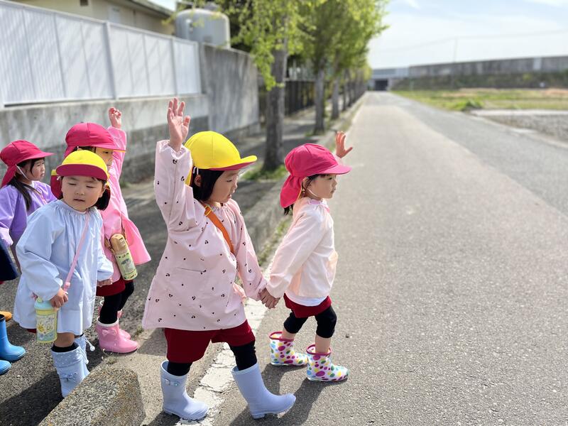 手をつないで、一緒に出かけます。