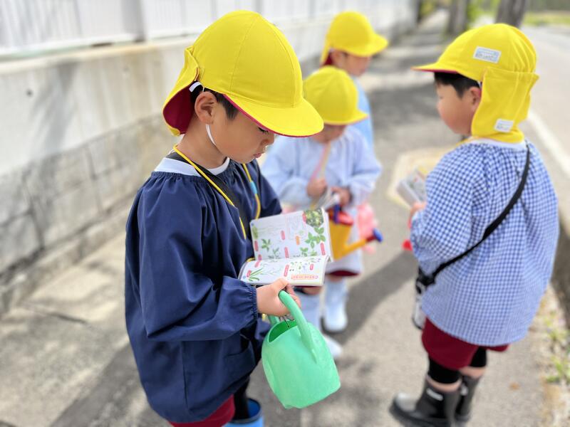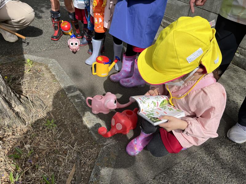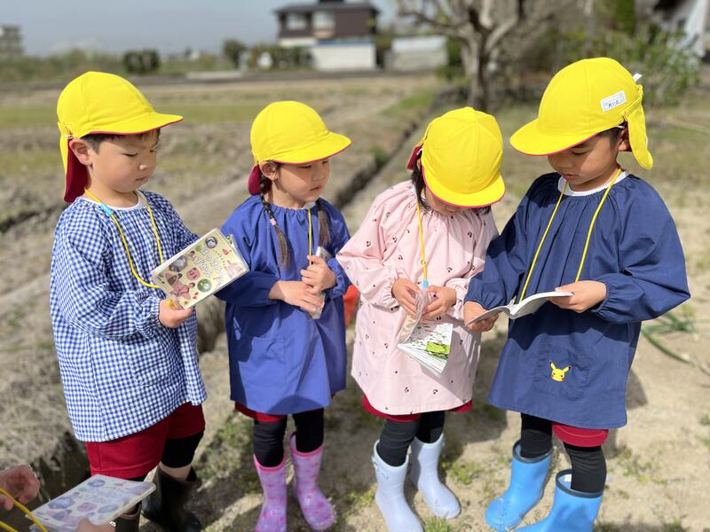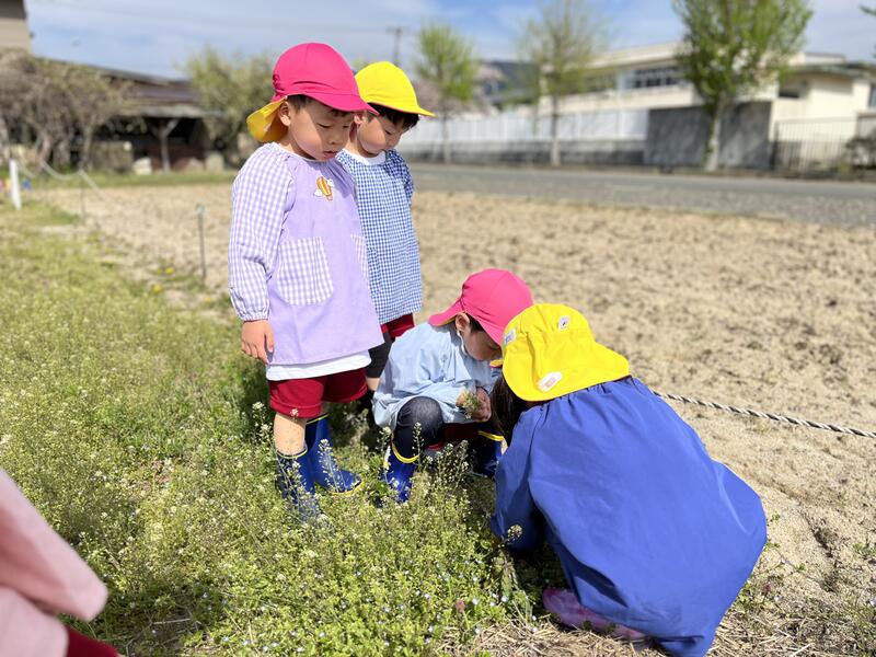 2024年4月18日 09時10分たけのこ組(5歳児)が、春の花を探しに畑に出かけました。