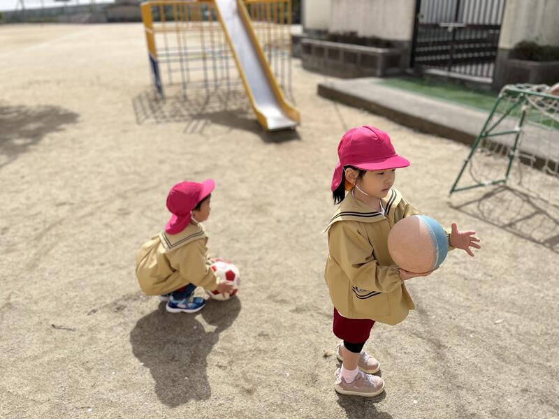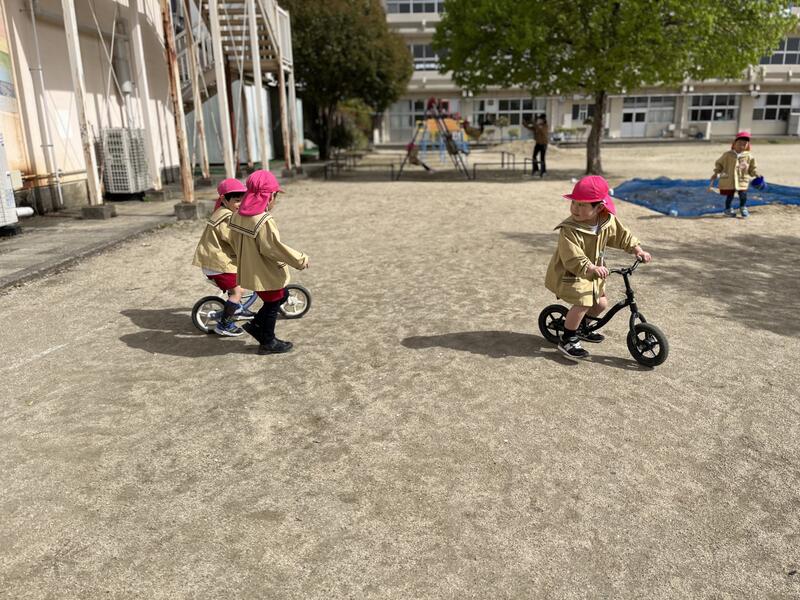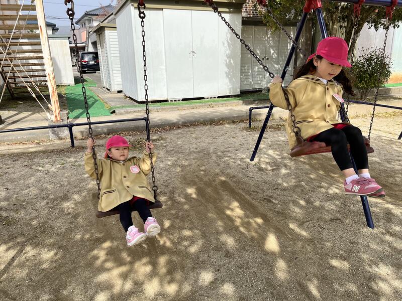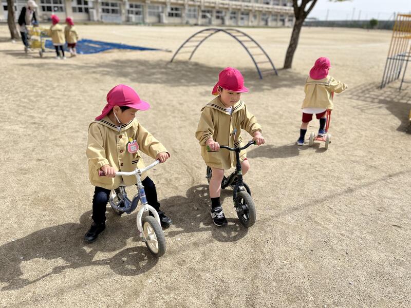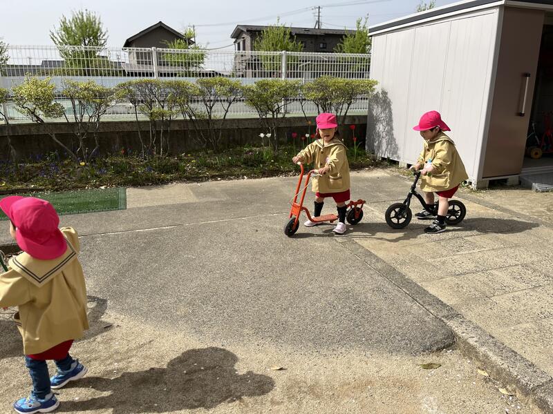 つくし組(4歳児)が、元気に園庭で遊んでいます。