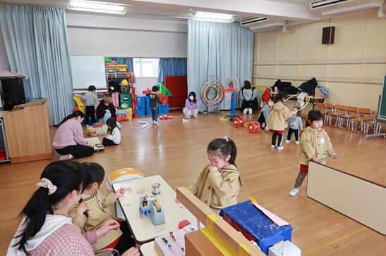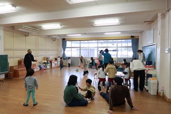 最初は、年少児と一緒に遊戯室で好きな遊びをして過ごしました。