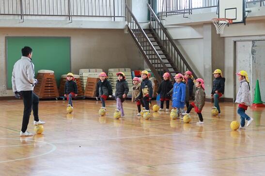 2月22日(木)今年度最後になる4回目のサッカー教室を笹谷小学校の体育館で行いました。